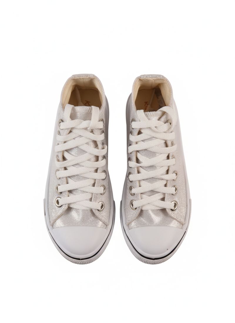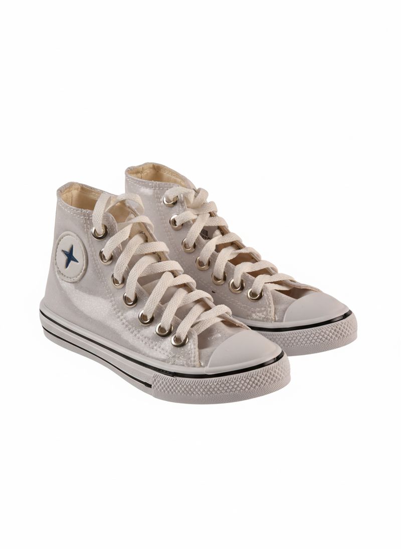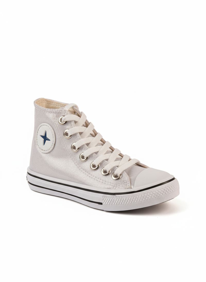Eleve seu estilo com o Tênis Cano Alto Caedu Branco Cintilante! Com seu acabamento brilhante e a charmosa estrela azul, este tênis oferece um visual único e confortável. Perfeito para quem busca moda e um toque de originalidade em suas roupas Caedu. Adquira já na loja virtual!