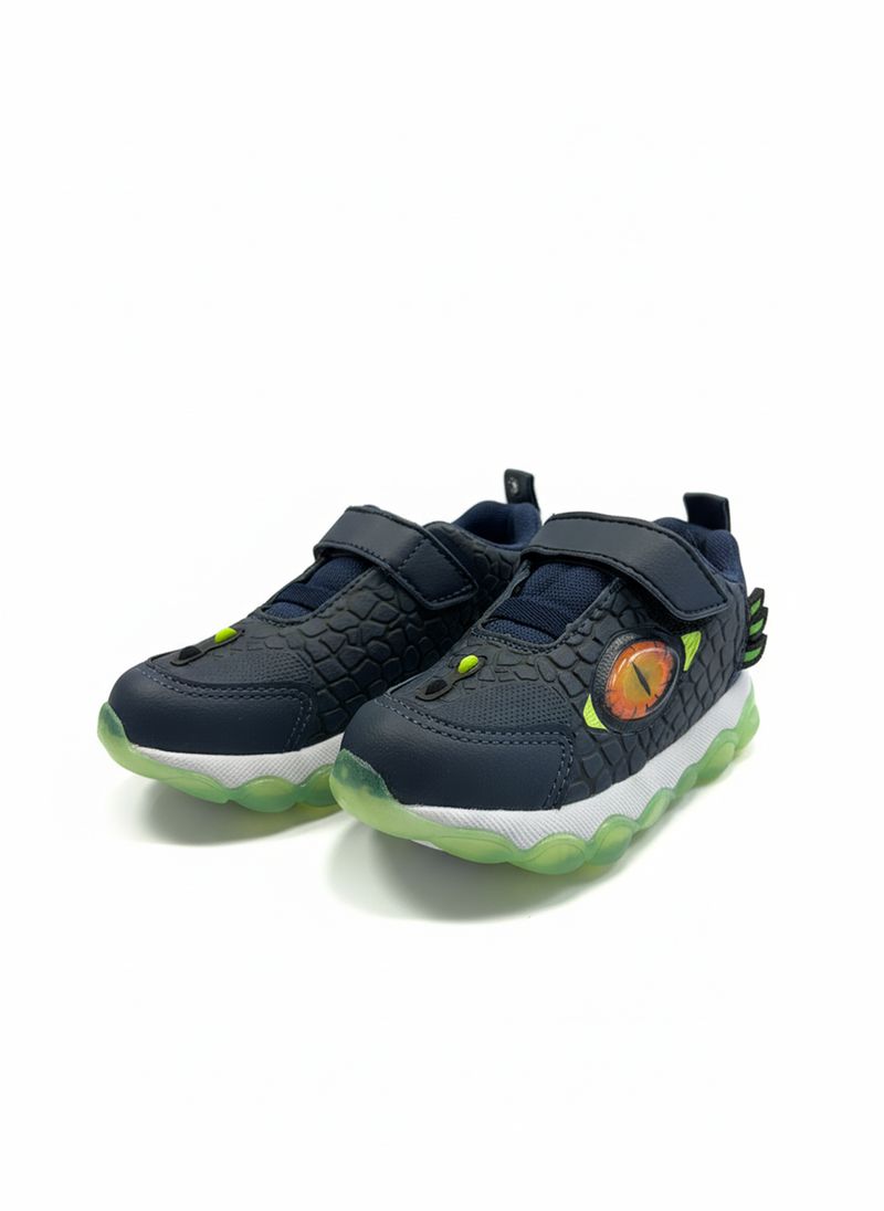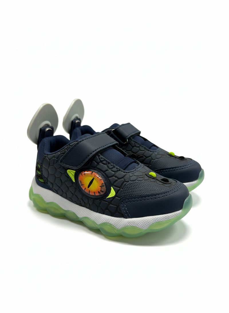 Prepare-se para a aventura com o Tênis Infantil LED Dinossauro Olho Feroz Marinho e Verde Caedu! Com luzes vibrantes e design de réptil, ele garante diversão e estilo. O fecho em velcro proporciona praticidade e segurança para os pequenos exploradores.