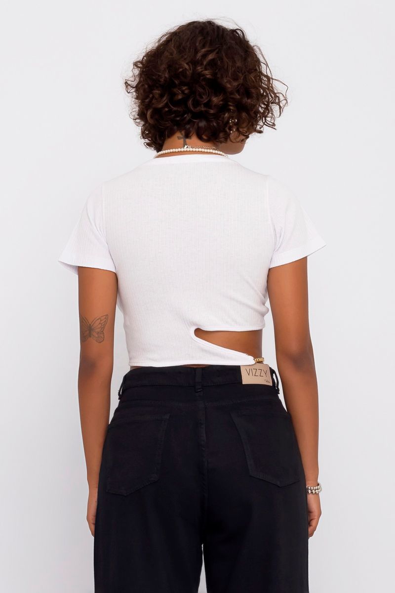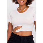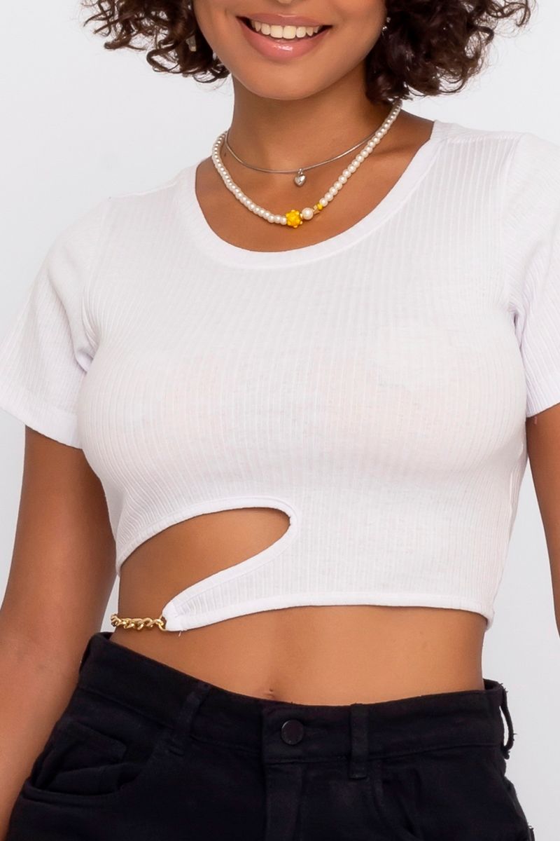 Blusa Cropped Feminina em Ribana com Corrente Branca