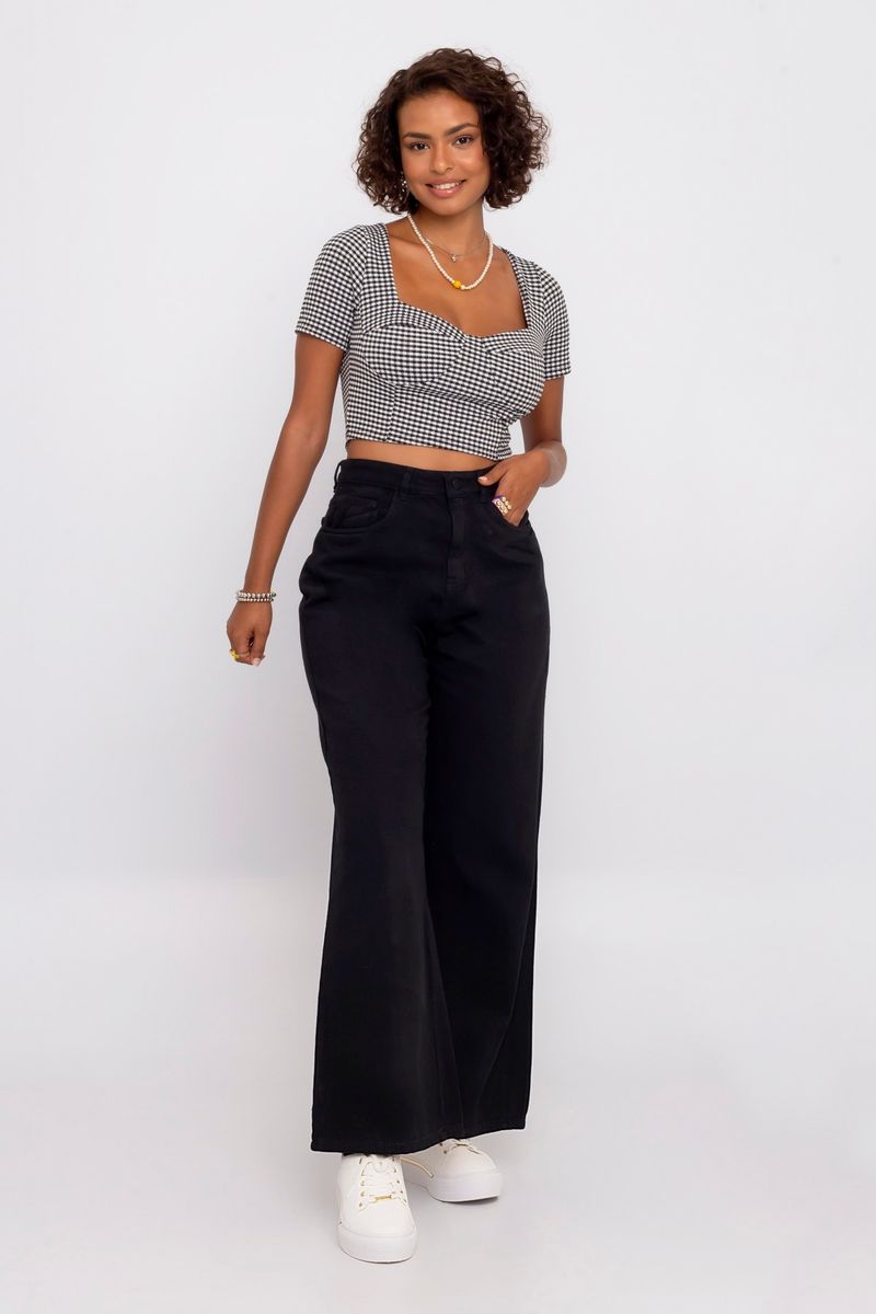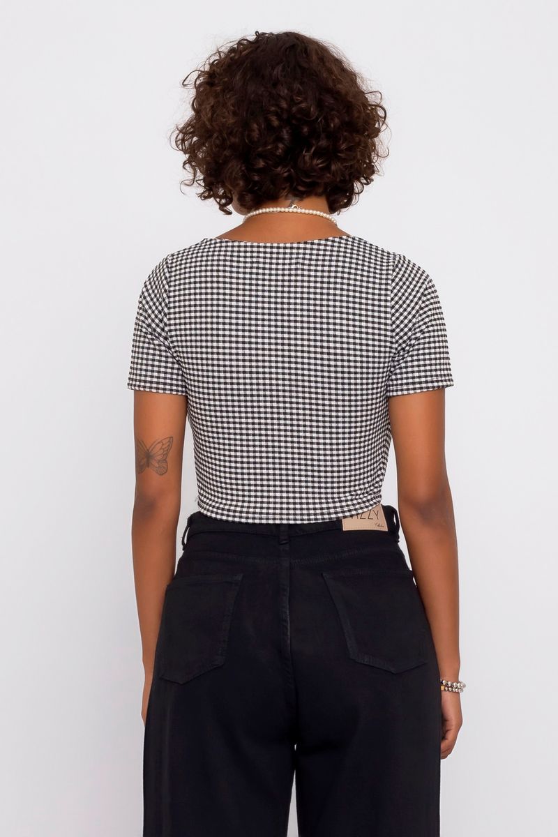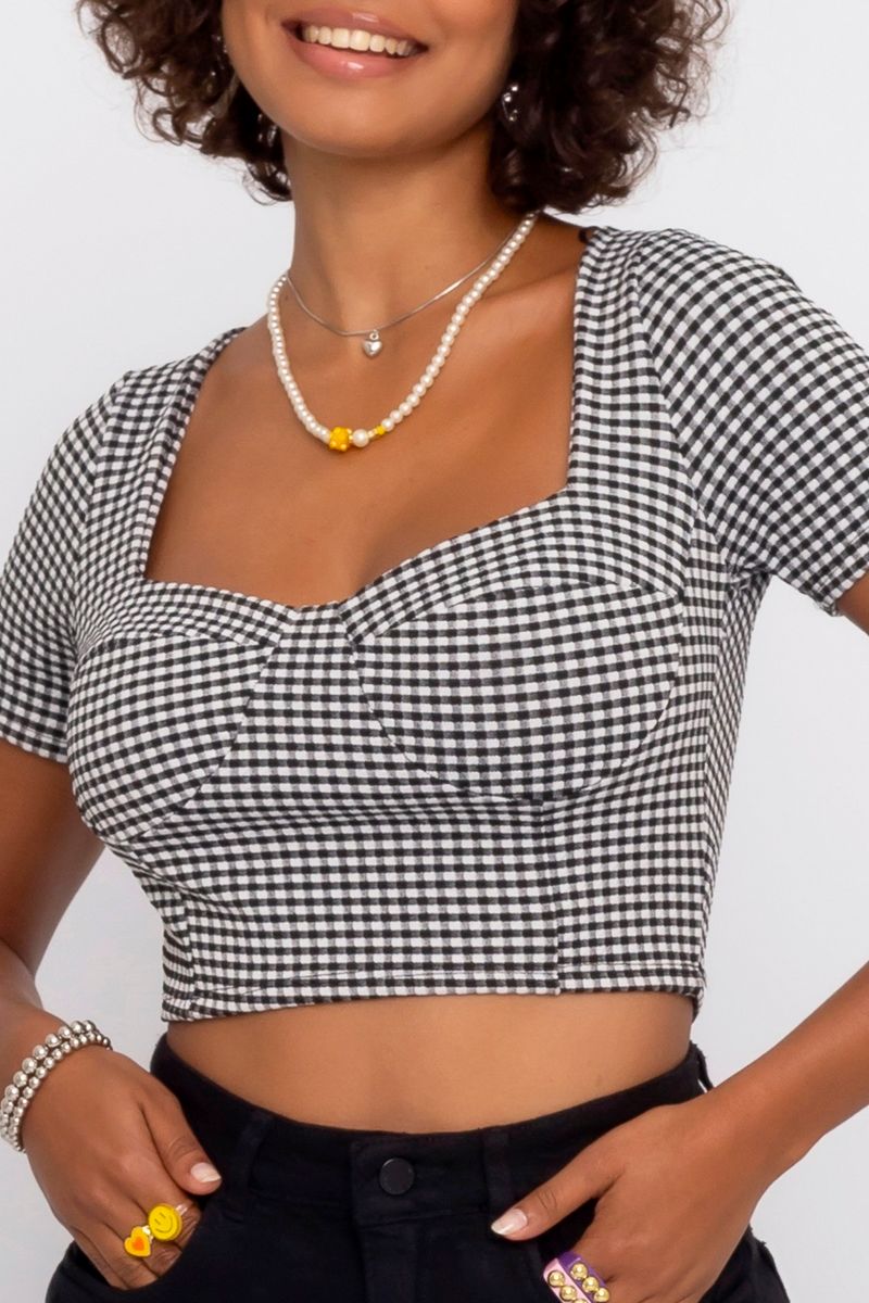 Blusa Cropped Feminina com Estampa Vichy Preto e Branco