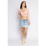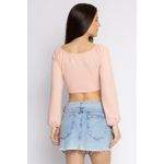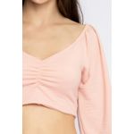 Blusa cropped rosa claro em favinho com mangas longas bufantes, decote coração