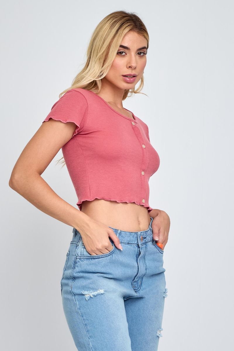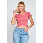 Realce seu estilo com o Top Feminino com Botões Rosa Escuro Caedu. Com manga curta e botões, esta peça em ribana de 100% poliéster oferece um visual elegante e moderno, perfeito para sua moda.