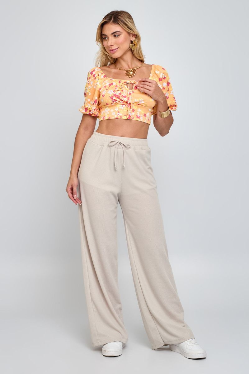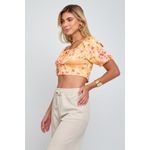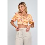 Combine o Top Cropped Floral Laranja com calças de cintura alta em tons neutros, como bege ou branco, para um visual sofisticado. Para um estilo mais despojado, aposte em shorts jeans. Complete o look com sandálias de salto bloco ou anabelas, e acessórios discretos como um colar dourado para realçar o decote.
