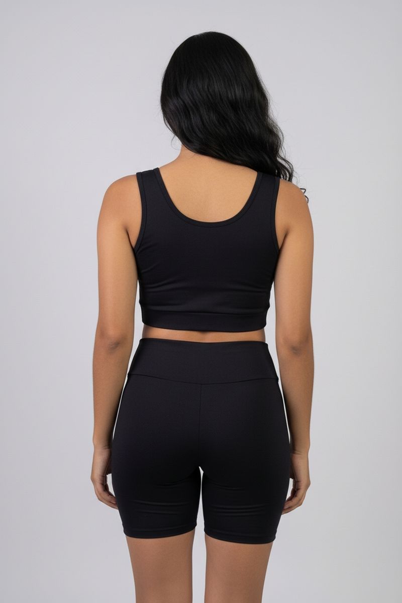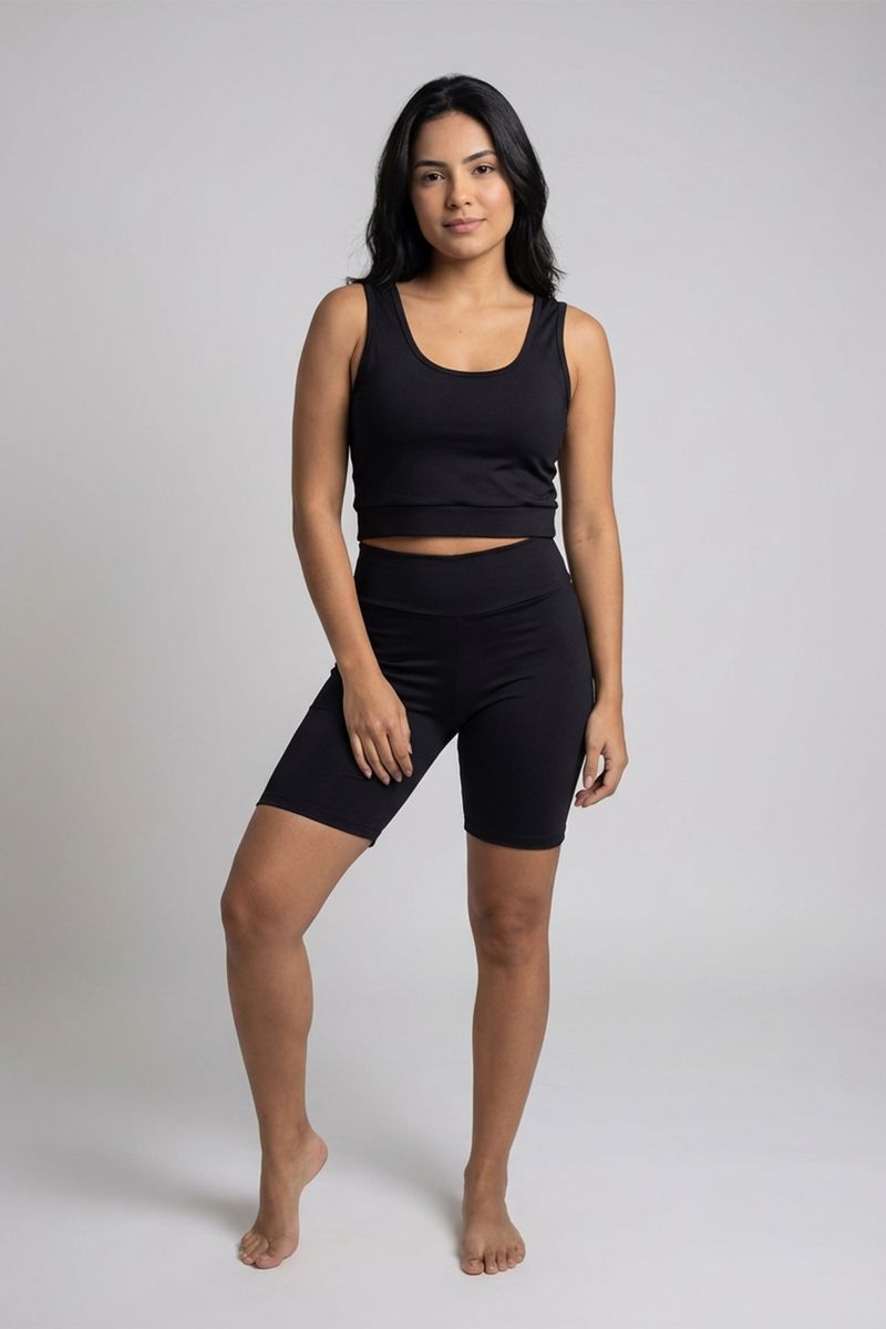 Eleve seu desempenho com o Top Fitness Cropped Feminino Caedu. Confeccionado em SUPPLEX e elastano, oferece conforto e flexibilidade. Seu design preto básico é perfeito para diversas combinações, garantindo estilo e suporte em cada movimento. Uma peça essencial para sua roupa fitness.