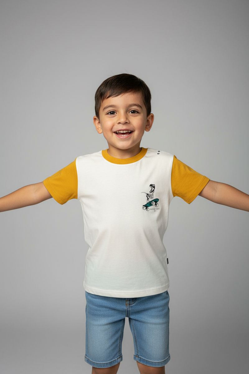 A Blusa Infantil Raglan Dino Skatista Caedu oferece conforto e estilo para os pequenos aventureiros. Confeccionada em 100% algodão de meia malha, garante maciez e liberdade. O design raglan com dinossauro skatista inspira diversão em cada movimento, perfeita para o dia a dia.
