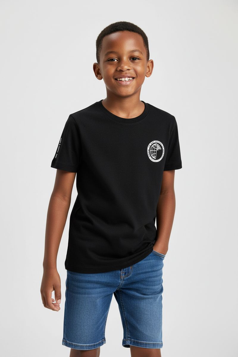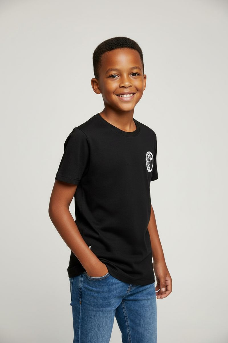 A Camiseta Infantil Preta Caedu é a roupa ideal para o dia a dia dos pequenos. Confeccionada em 100% algodão, oferece conforto infantil e maciez. Sua estampa de globo inspira a imaginação, tornando-la uma peça essencial na moda infantil para pequenos aventureiros.