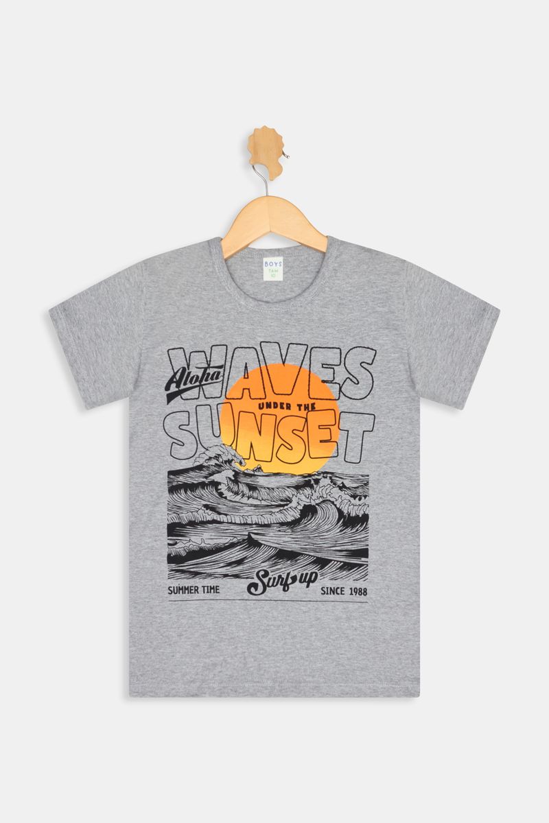 meia malha 100% algodão, garante maciez e durabilidade. Com estampa exclusiva de surfe e pôr do sol, é a