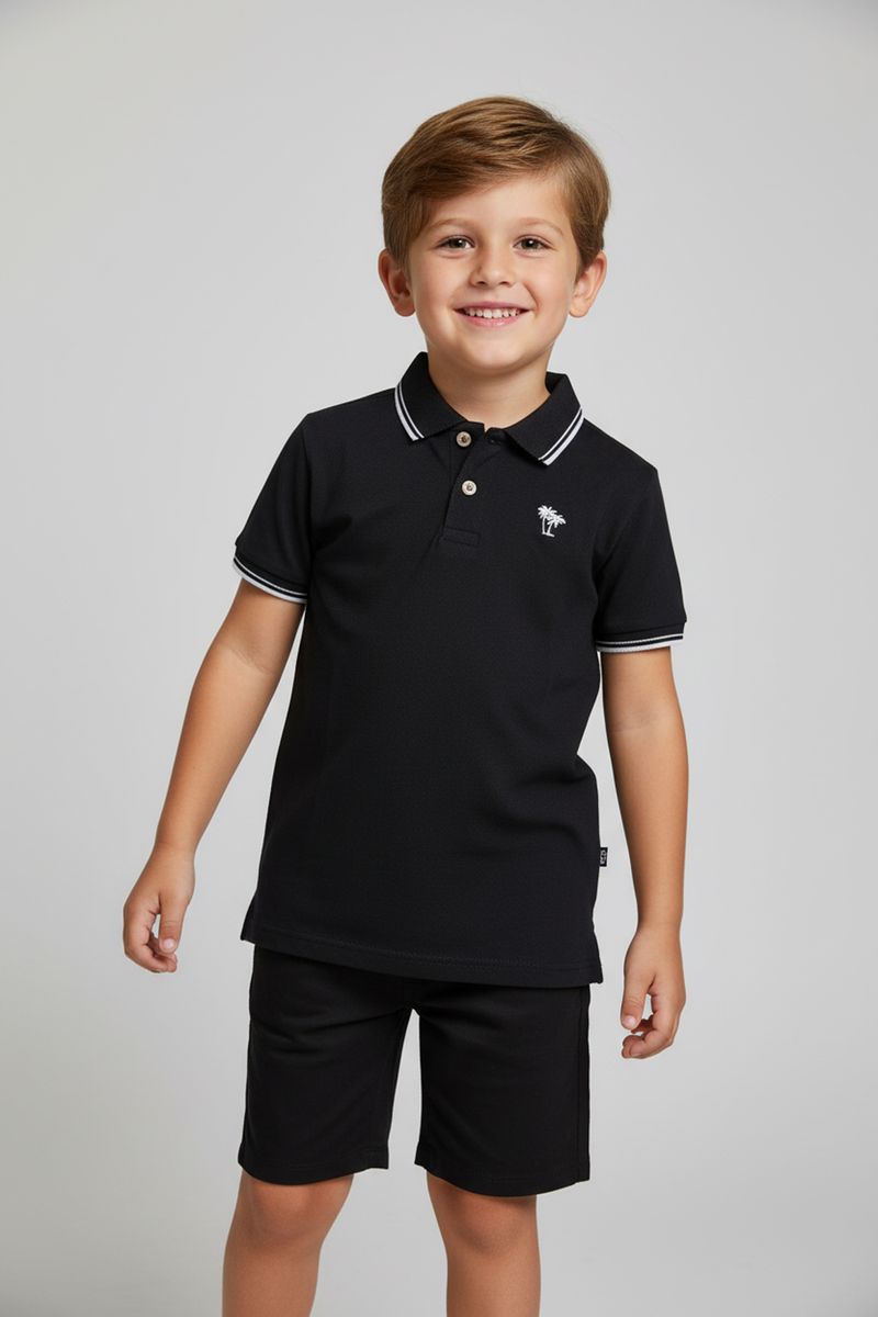 A Camiseta Polo Infantil Caedu, em 100% algodão de meia malha, oferece conforto e estilo. Com bordado de palmeira e listras brancas, garante um visual moderno e versátil. Ideal para o dia a dia, é a peça chave para roupas infantis.