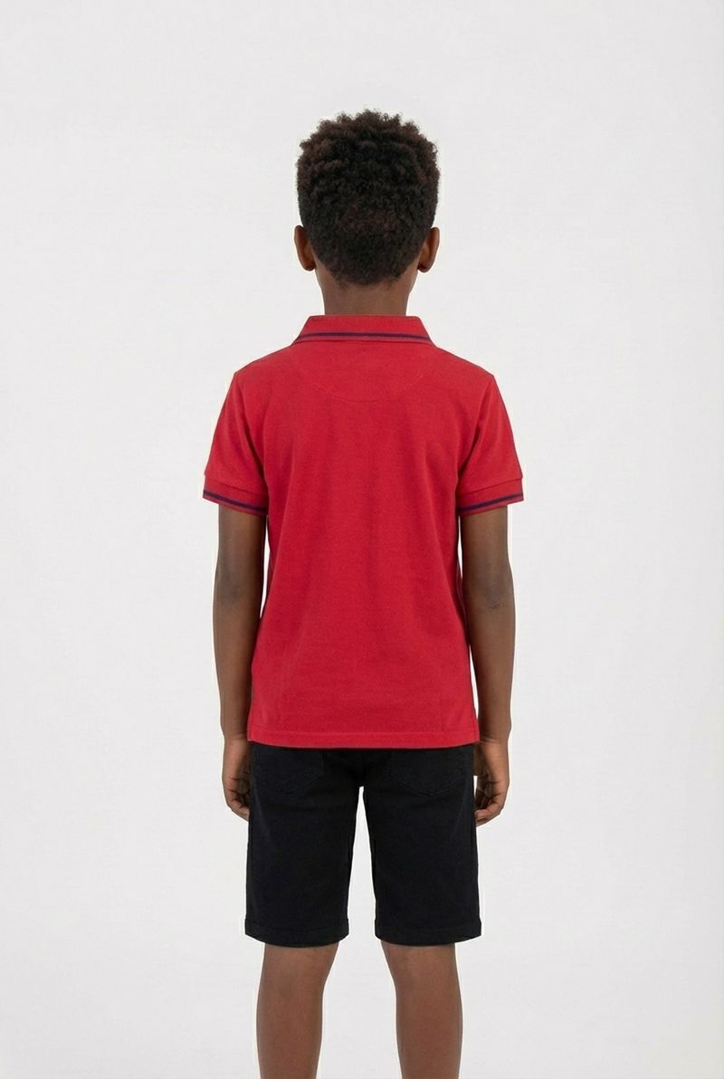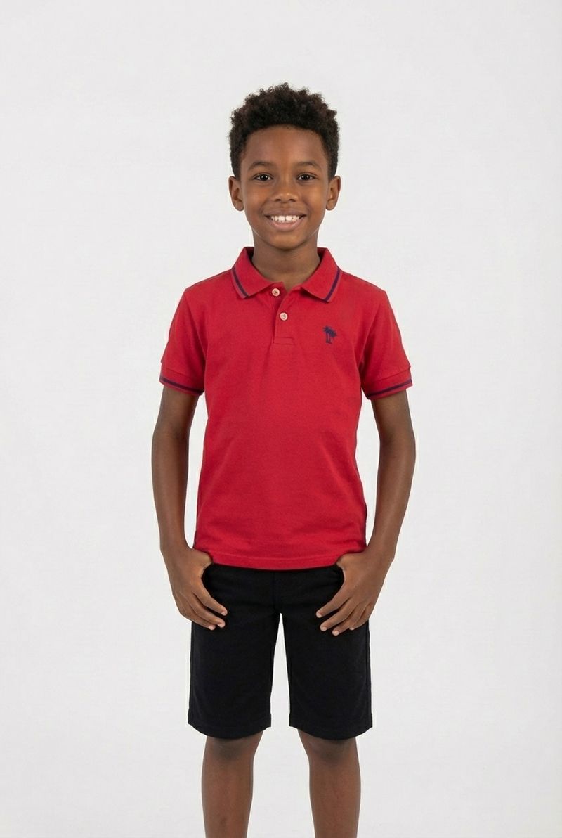 Combine a polo vermelha com shorts pretos ou jeans para um visual casual. Para um toque mais arrumado, use com calças chino e tênis brancos. Adicione um boné para um estilo despojado e divertido, completando o look com roupas Caedu.