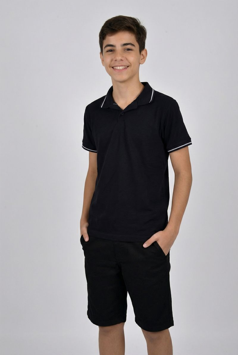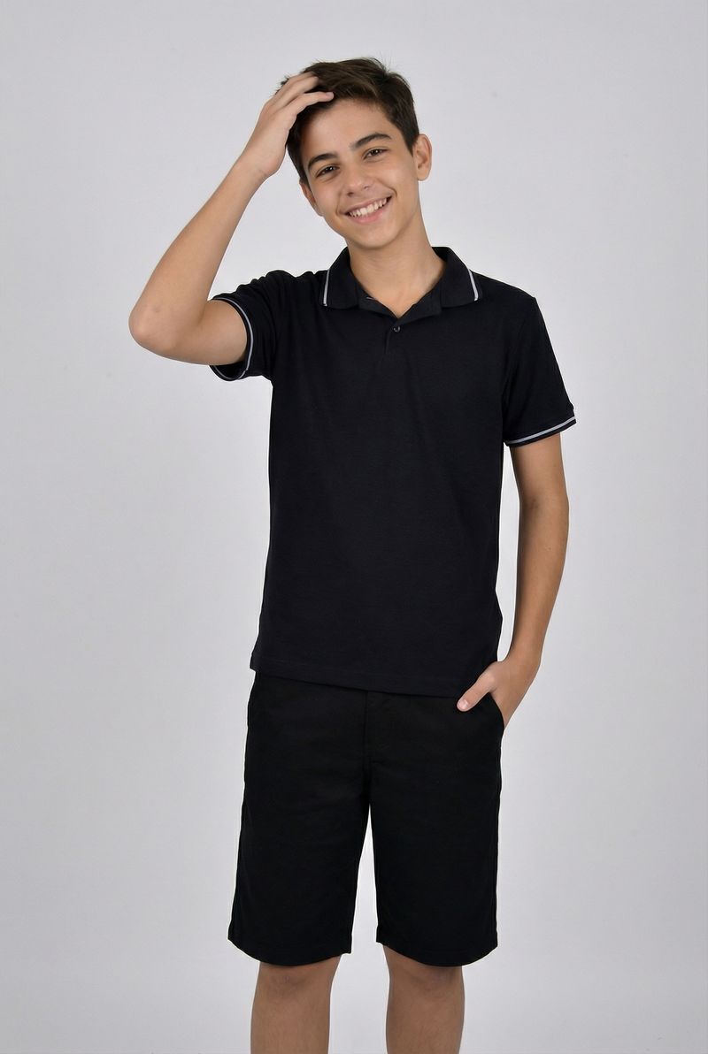 A Camiseta Polo Infantil Juvenil Caedu oferece conforto e estilo. Em malha 100% algodão, azul marinho com frisos brancos, é a roupa ideal para o dia a dia. Essencial na moda infantil.