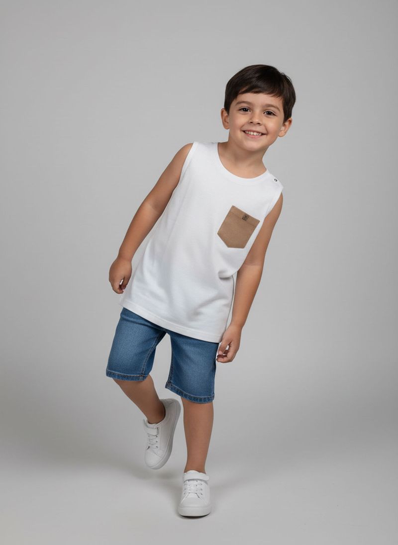 Perfeita para brincadeiras no parque, passeios em família e momentos de lazer, esta regata versátil acompanha os pequenos em todas as suas aventuras diárias, garantindo conforto e estilo em cada movimento.
