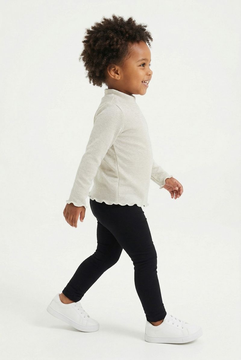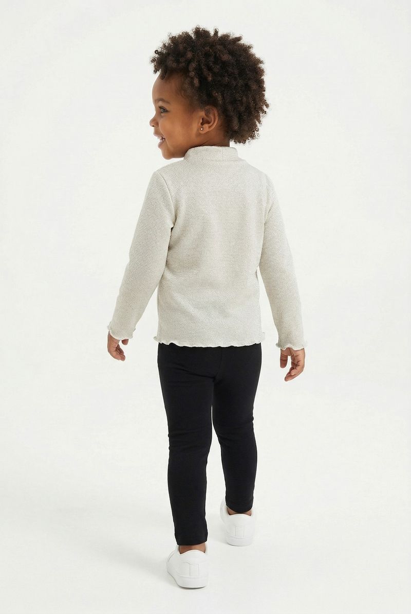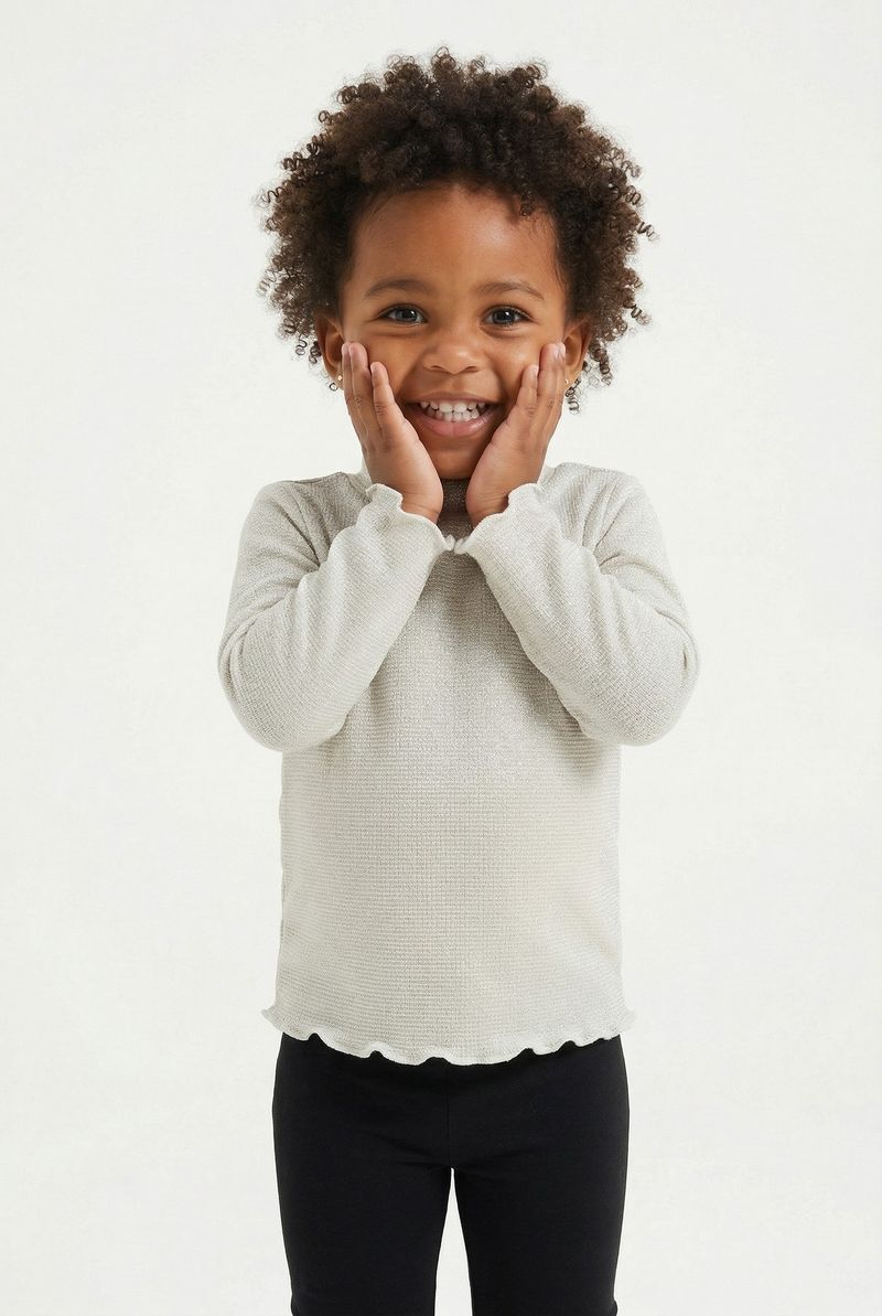 A Blusa Infantil Manga Longa Lurex Dourado com Babados Caedu oferece brilho e conforto para as pequenas. Com seu design encantador, manga longa e detalhes em babados, é a escolha perfeita para um look estiloso e moderno. Ideal para a moda infantil.