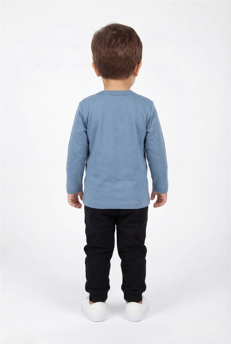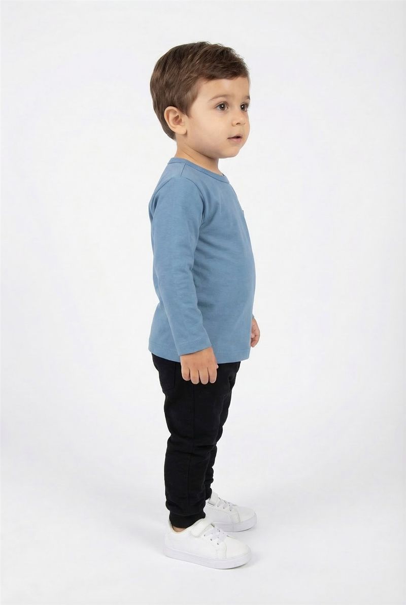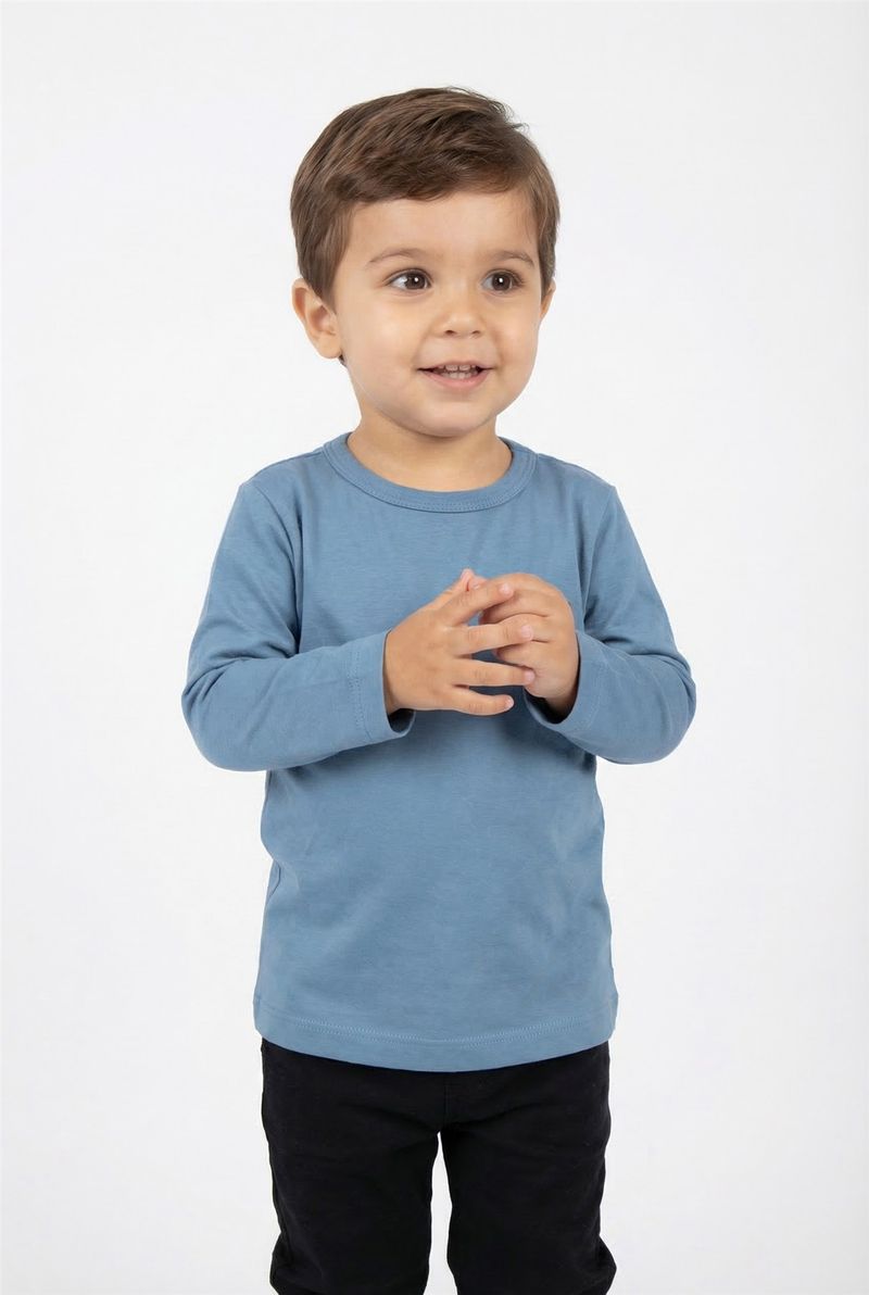 A blusa infantil de manga longa Caedu em azul médio é a escolha perfeita para o dia a dia dos pequenos. Com design básico e um charmoso aplique, oferece conforto e estilo, ideal para criar looks versáteis. Uma peça essencial na moda infantil.