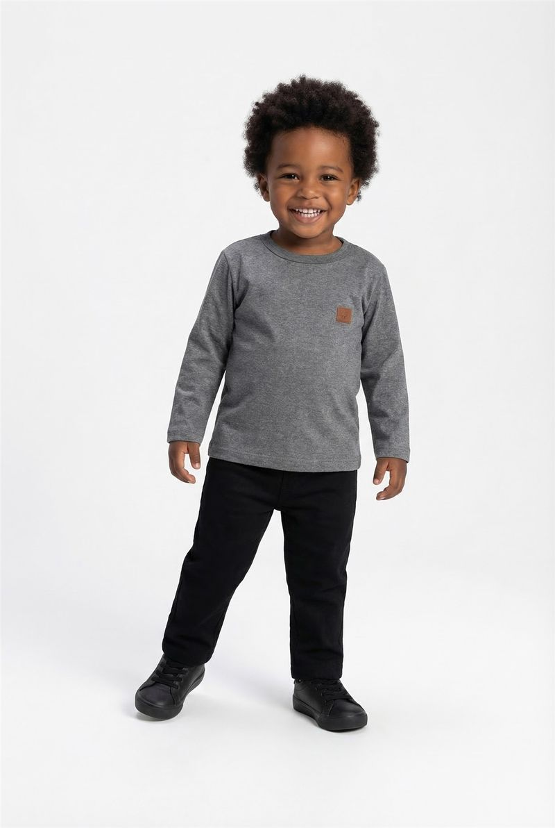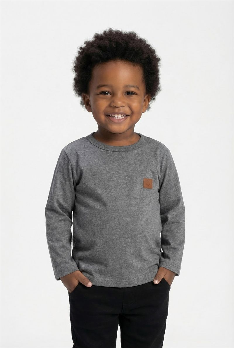 A Blusa Infantil Manga Longa Mescla Chumbo Caedu oferece conforto e estilo para o dia a dia. Com seu design cinza escuro mescla e um charmoso patch decorativo, esta peça é perfeita para criar looks modernos e cheios de personalidade. Uma roupa essencial no guarda-roupa infantil.
