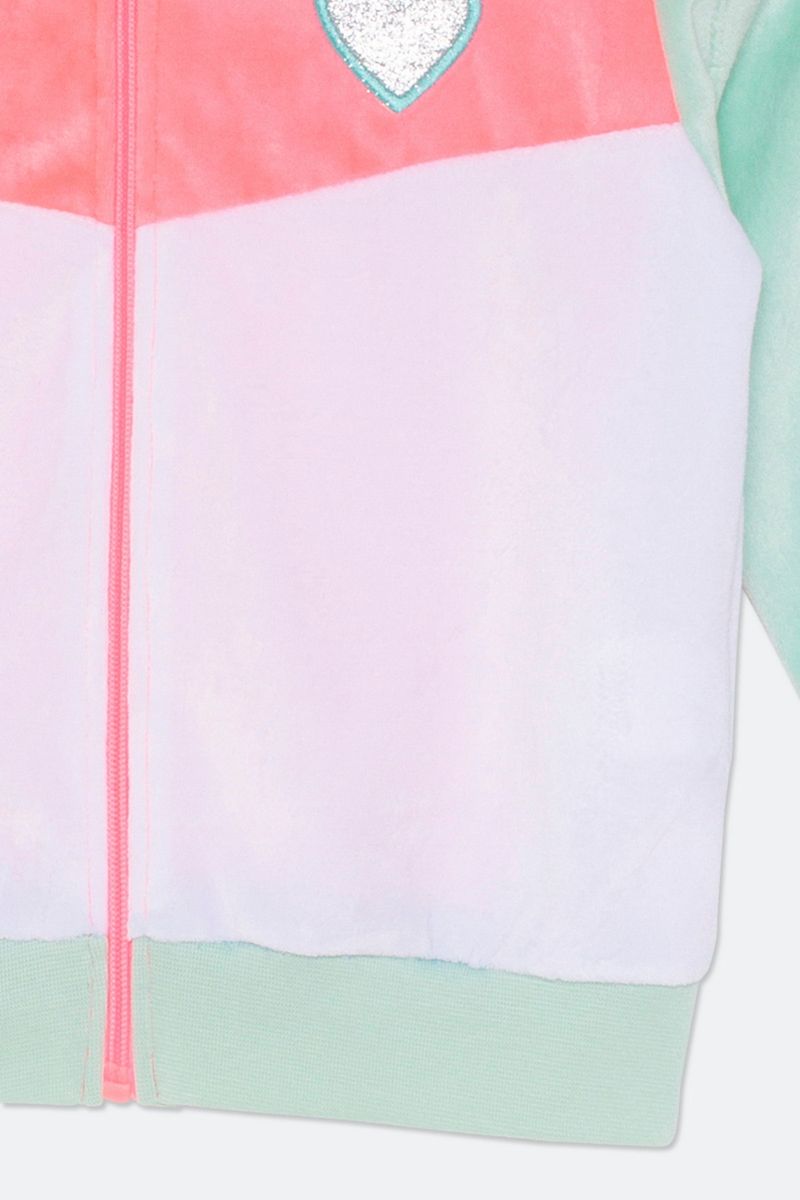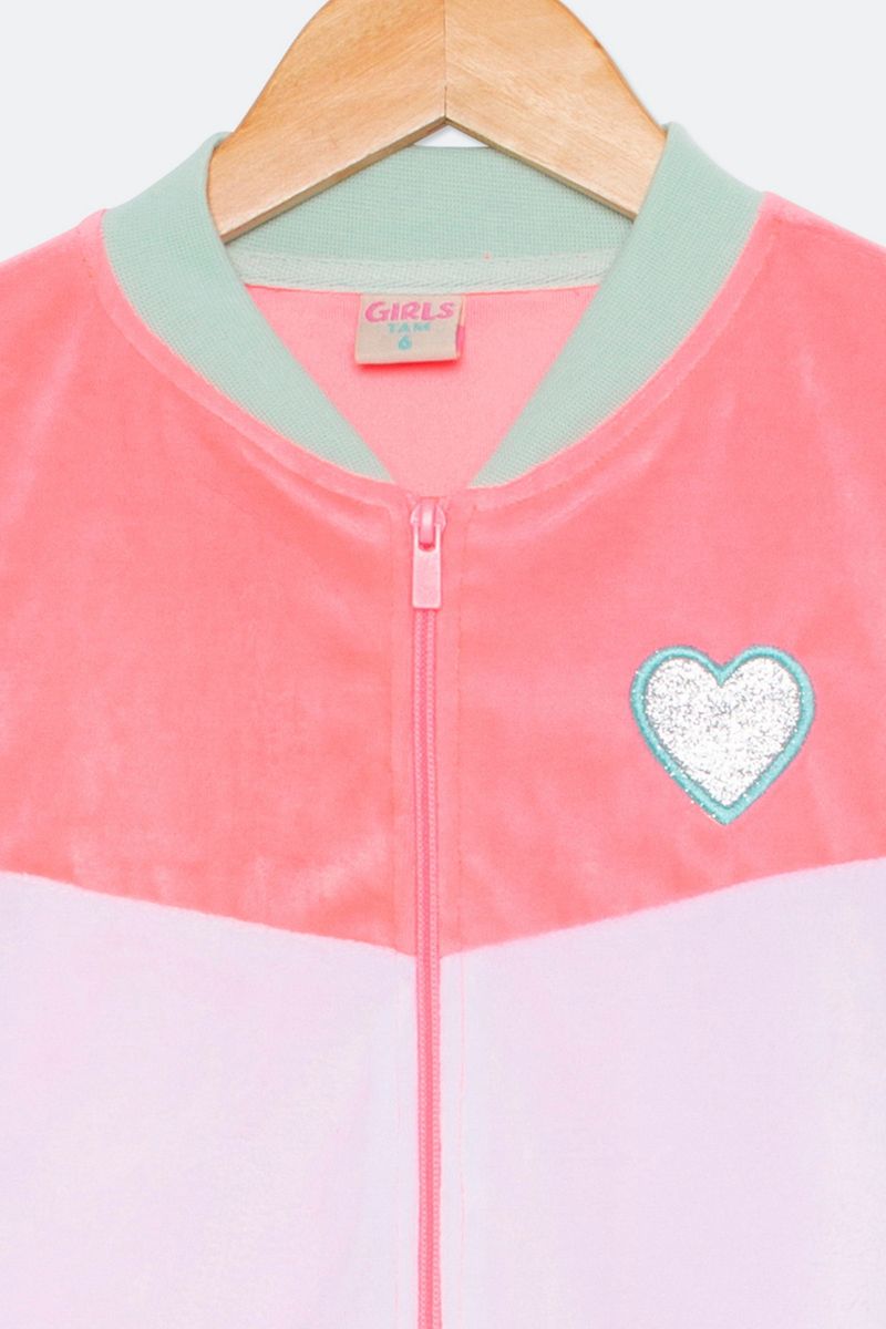 Jaqueta Infantil em Moletom com Estampa Coração Rosa e Verde Claro Tam 4 a 8