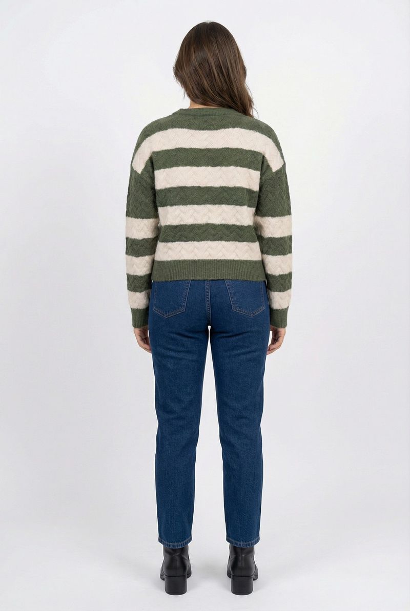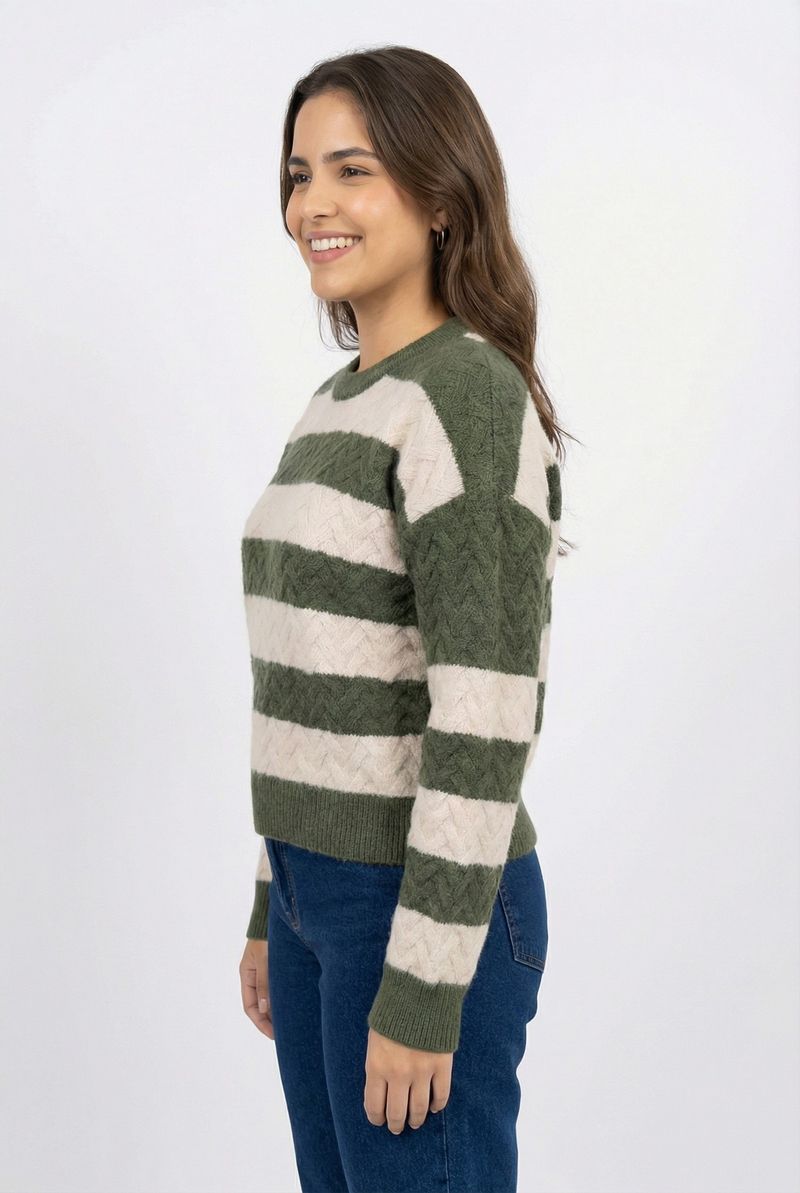 VestuárioFemininoSuéteresTrico fem casual fcal411 m/l listrado verde escuro