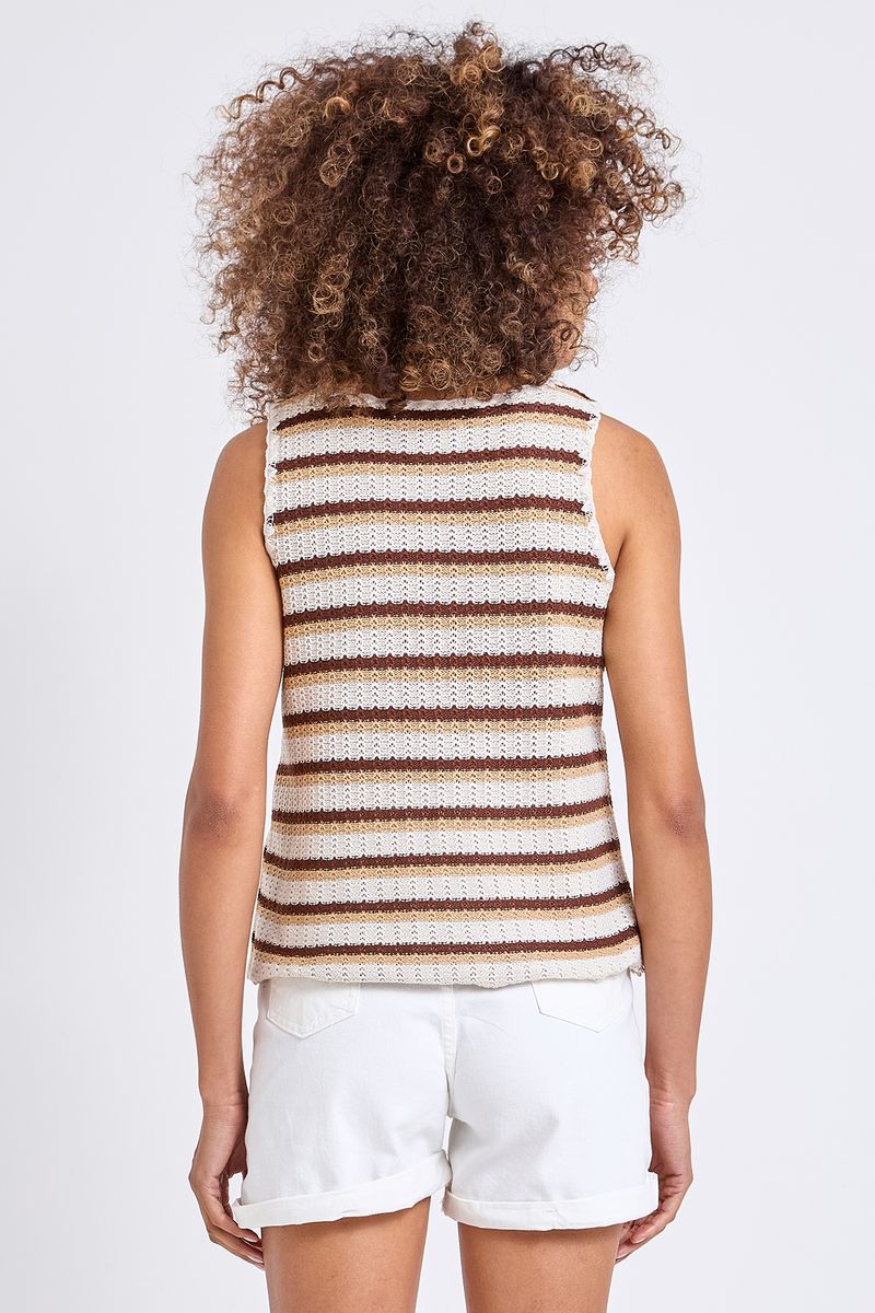 A Regata Tricot Crochê Listrada é perfeita para passeios casuais, encontros com amigos, eventos ao ar livre ou para um look descontraído no dia a dia. Adapta-se a momentos de lazer e descontração.