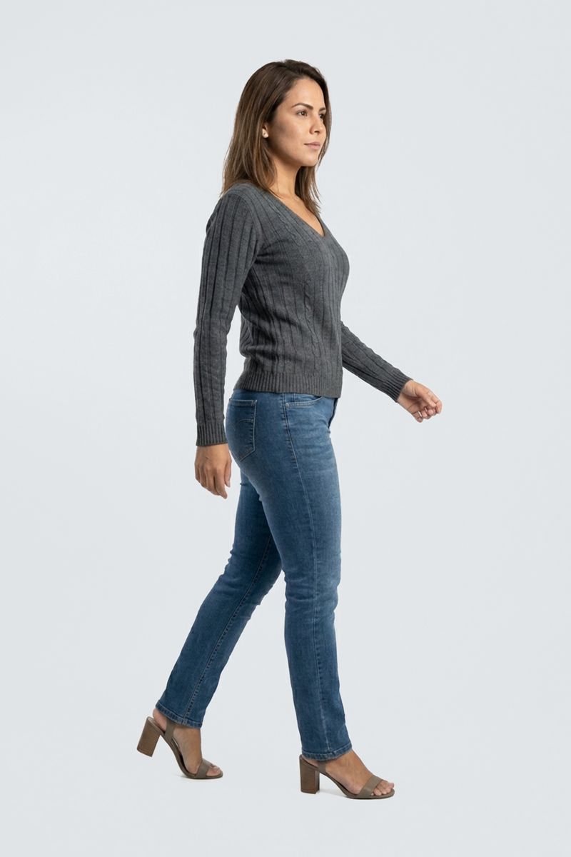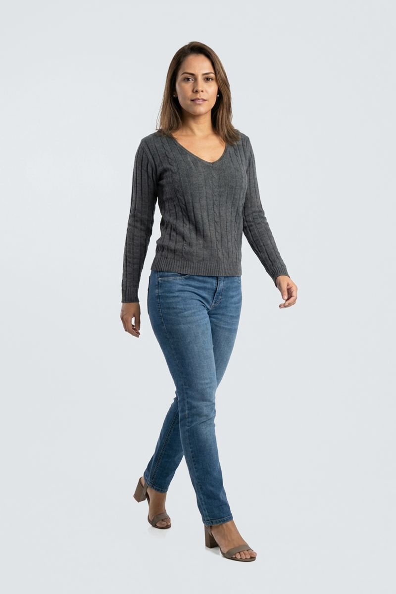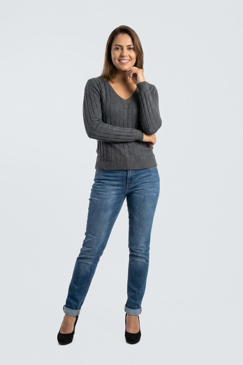 VestuárioFemininoSuéteresTricot fem promo m/l decote v cinza escu cinza escuro