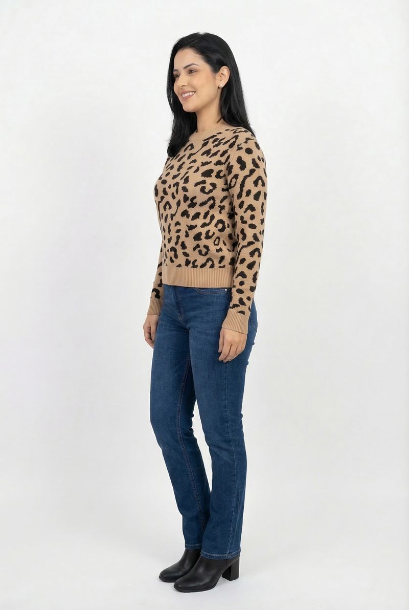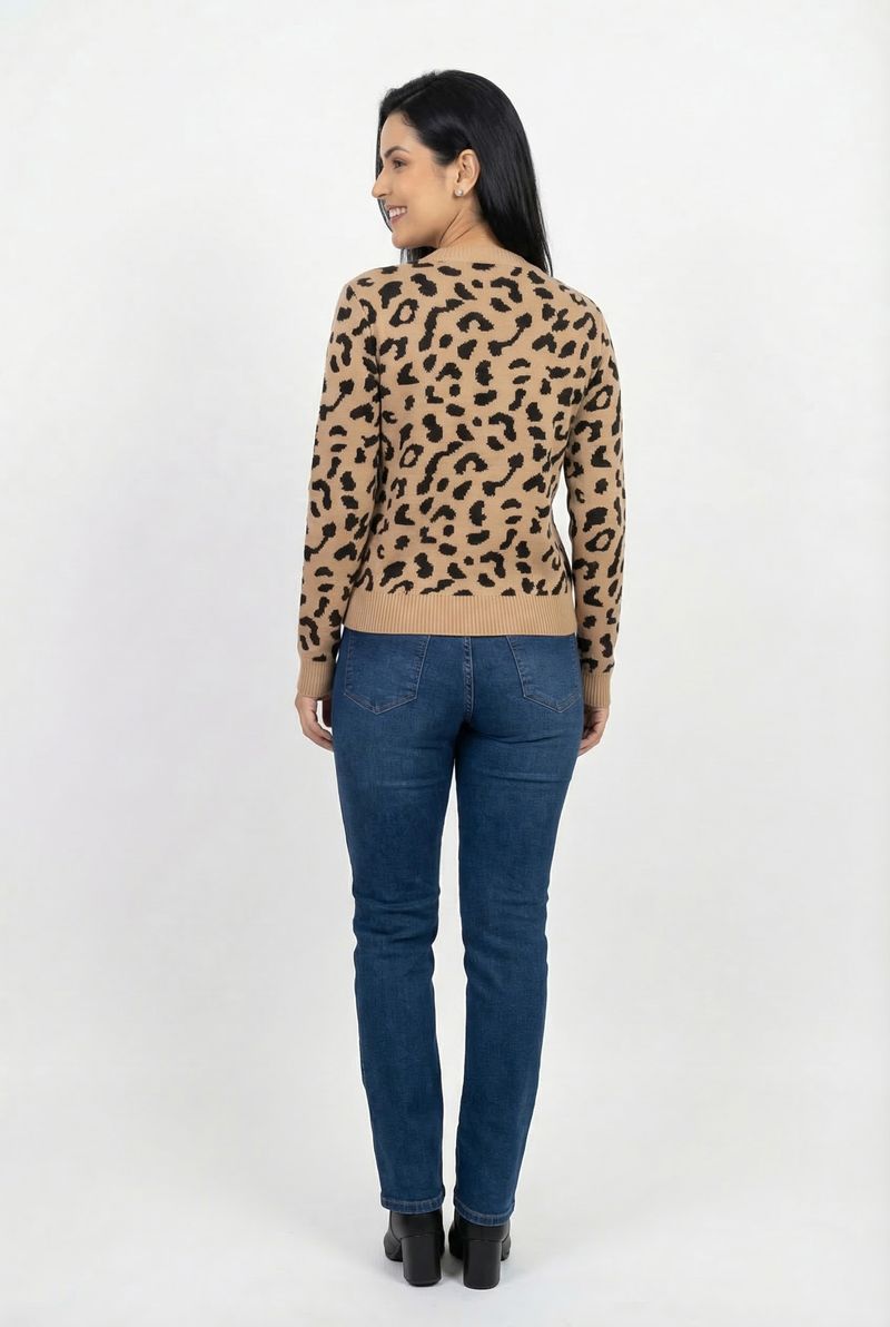 Descubra o Suéter Feminino Tricot Animal Print Onça Manga Longa Caedu, a peça essencial da nova coleção de outono inverno. Com sua estampa animal print onça e o conforto do tricot, este suéter estampado oferece um toque de ousadia e elegância para seus looks. Perfeito para quem busca roupas que unem moda e bem-estar.