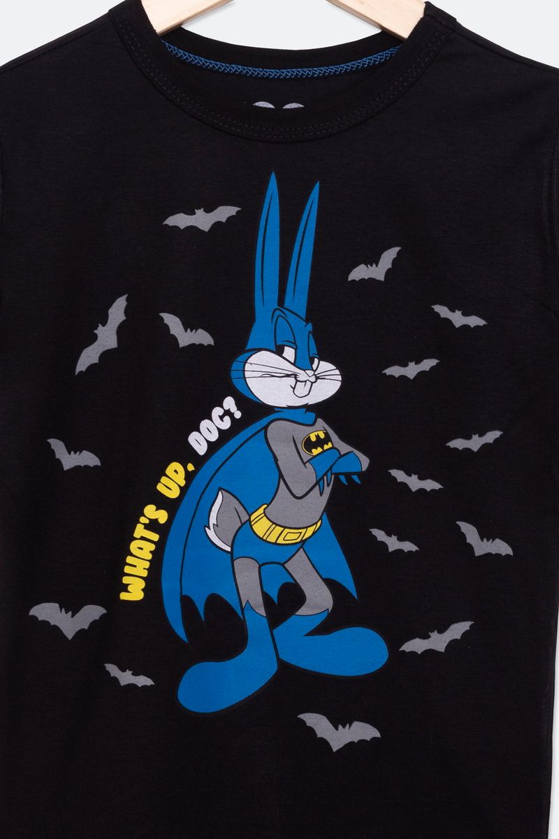 Camiseta Infantil com Estampa Pernalonga Batman Preta Tam 4 a 10