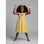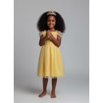 Detalhes: Tule com glitter, tiara, estampa frontal de corpete, mangas caídas