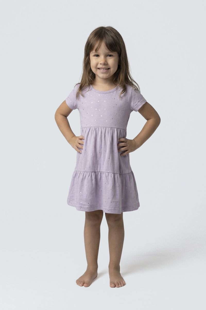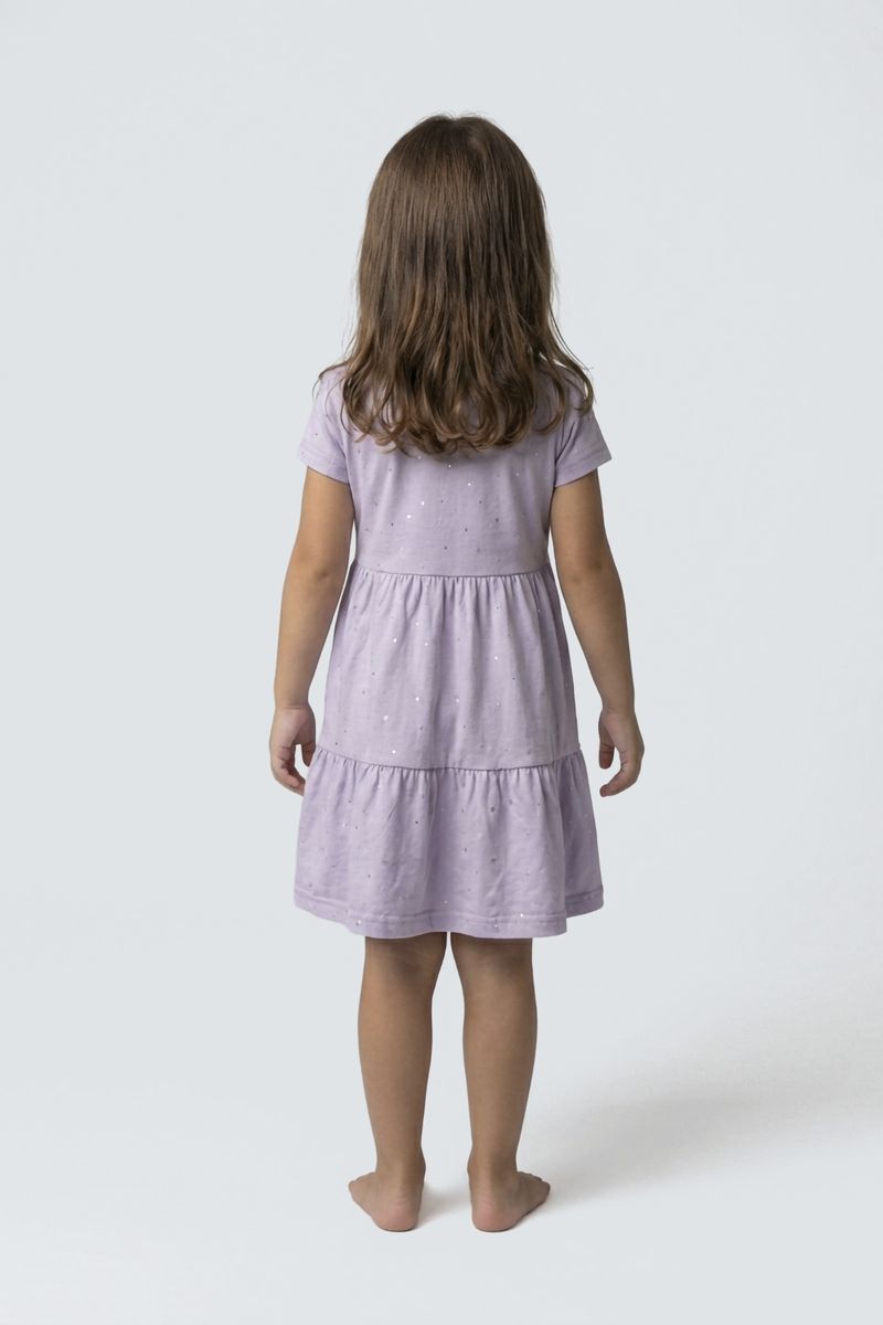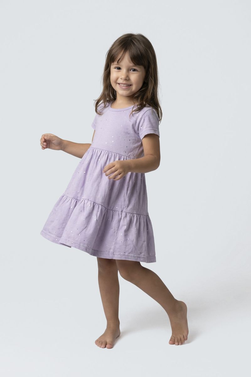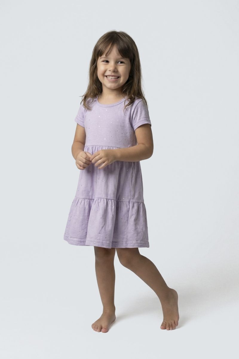 O Vestido Infantil Lilás Encantador Caedu é a escolha perfeita para sua pequena brilhar. Confeccionado em meia malha, oferece conforto e leveza. Seu design com brilho sutil e saia de camadas proporciona movimento e um toque mágico, ideal para momentos especiais e o dia a dia com muito estilo.