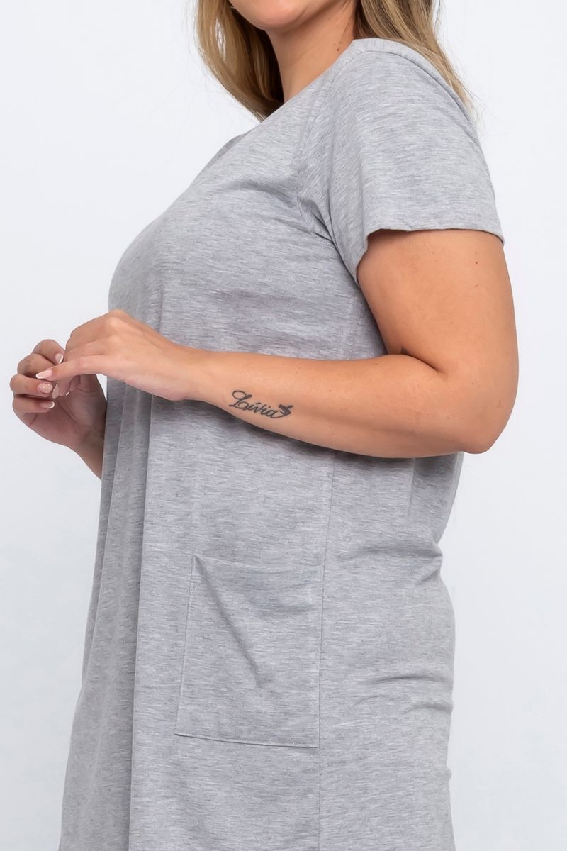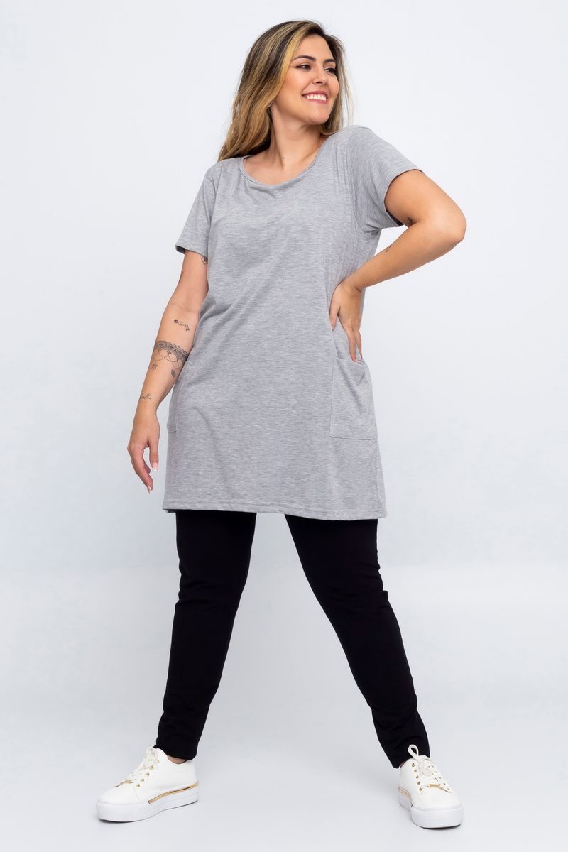 Vestido legging feminino com bolsos, em tom mescla, ideal para conforto e estilo no dia a dia.