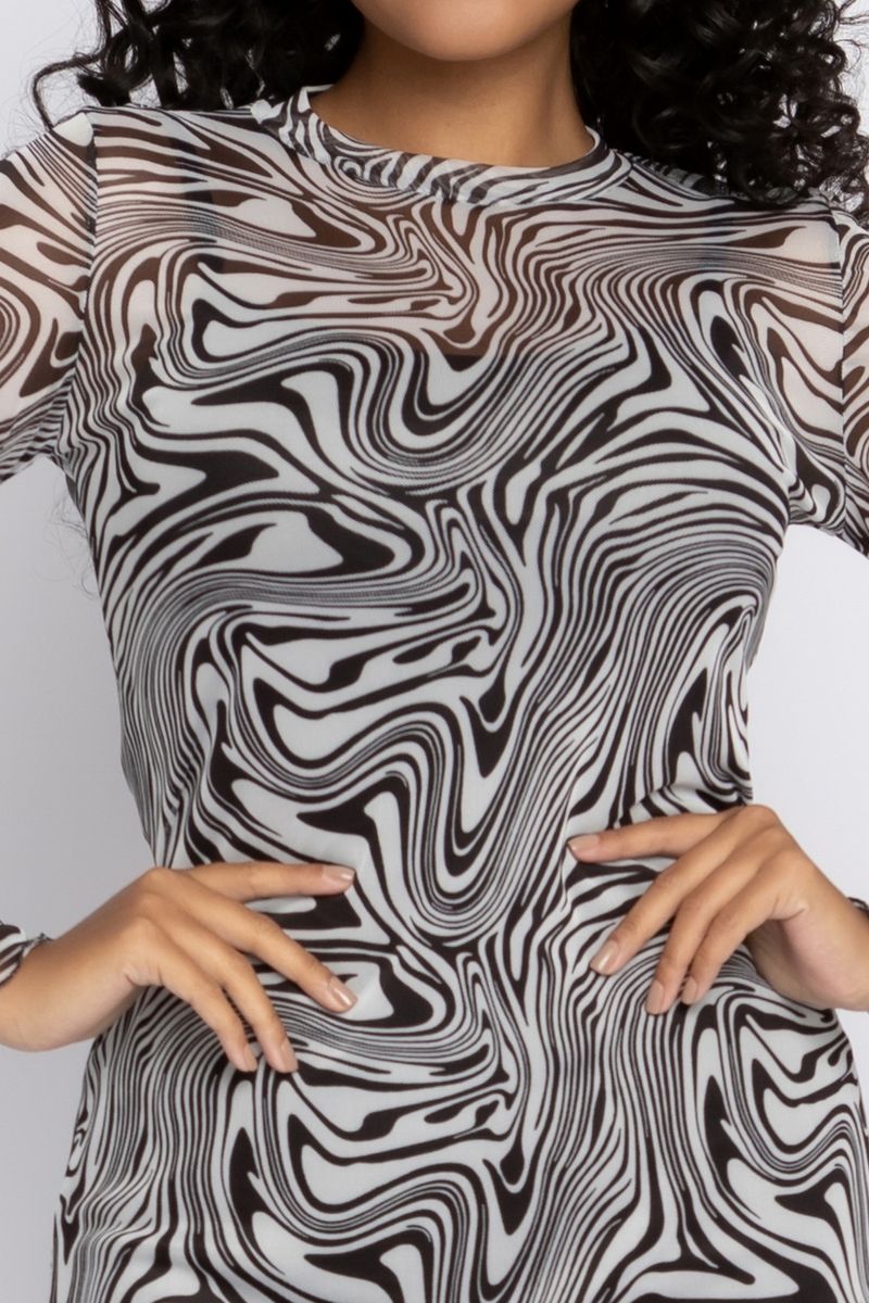 Vestido Curto Feminino em Tule com Estampa Psicodélica Preto e Branco