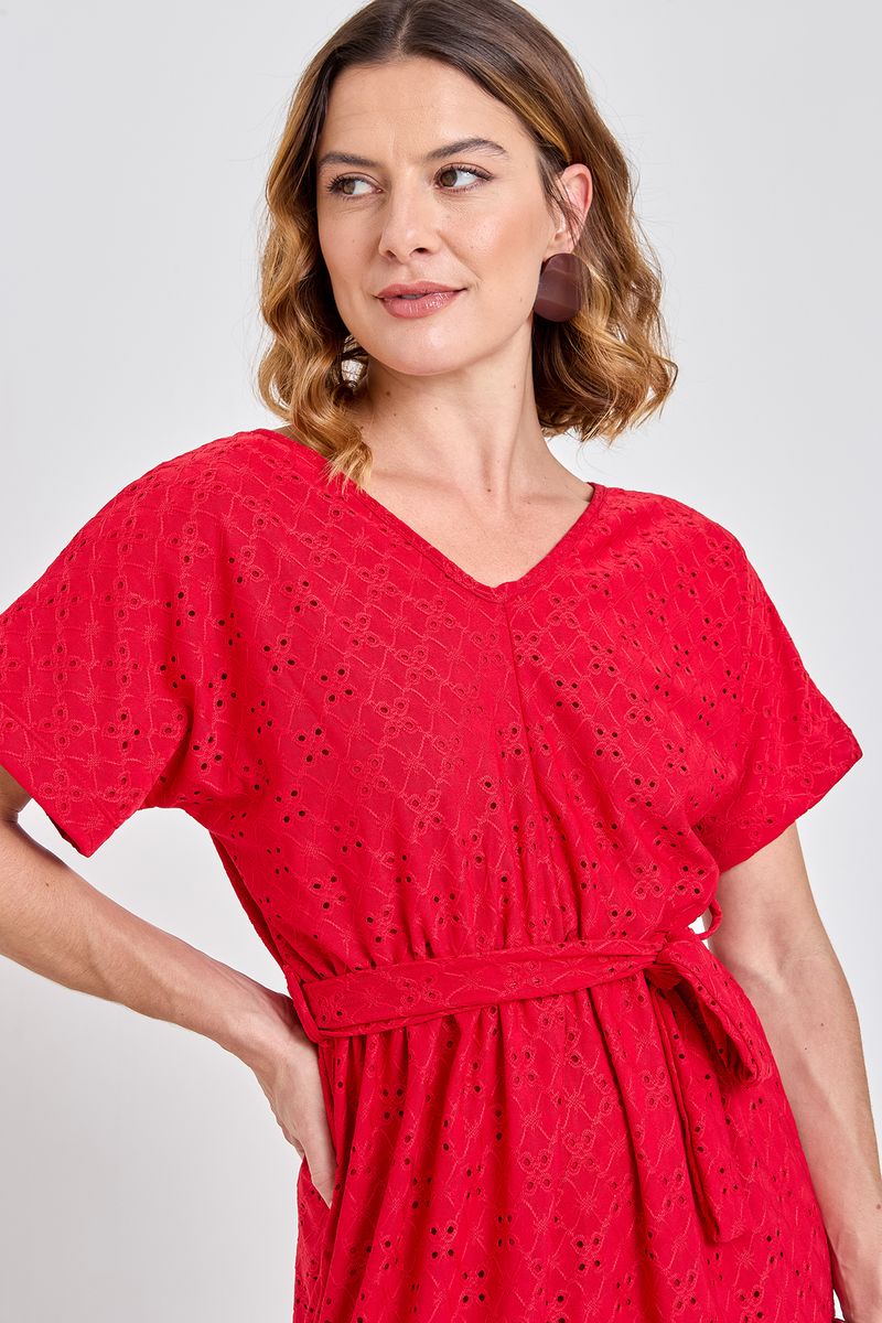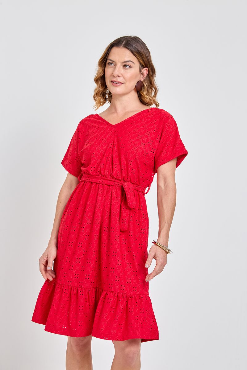 Combine seu Vestido Laise Vermelho Claro com sandálias rasteirinhas para um visual despojado, ou aposte em anabelas e acessórios dourados para um toque mais elegante. Uma jaqueta jeans leve pode complementar o look em dias mais frescos, criando um contraste moderno e estiloso.