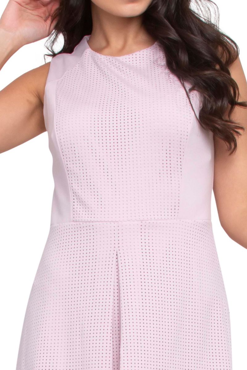 O vestido rose sem mangas e comprimento curto possui favinhos na frente e é perfeito para diferentes ocasiões, permitindo composições com outras peças e diversos tipos de calçados.