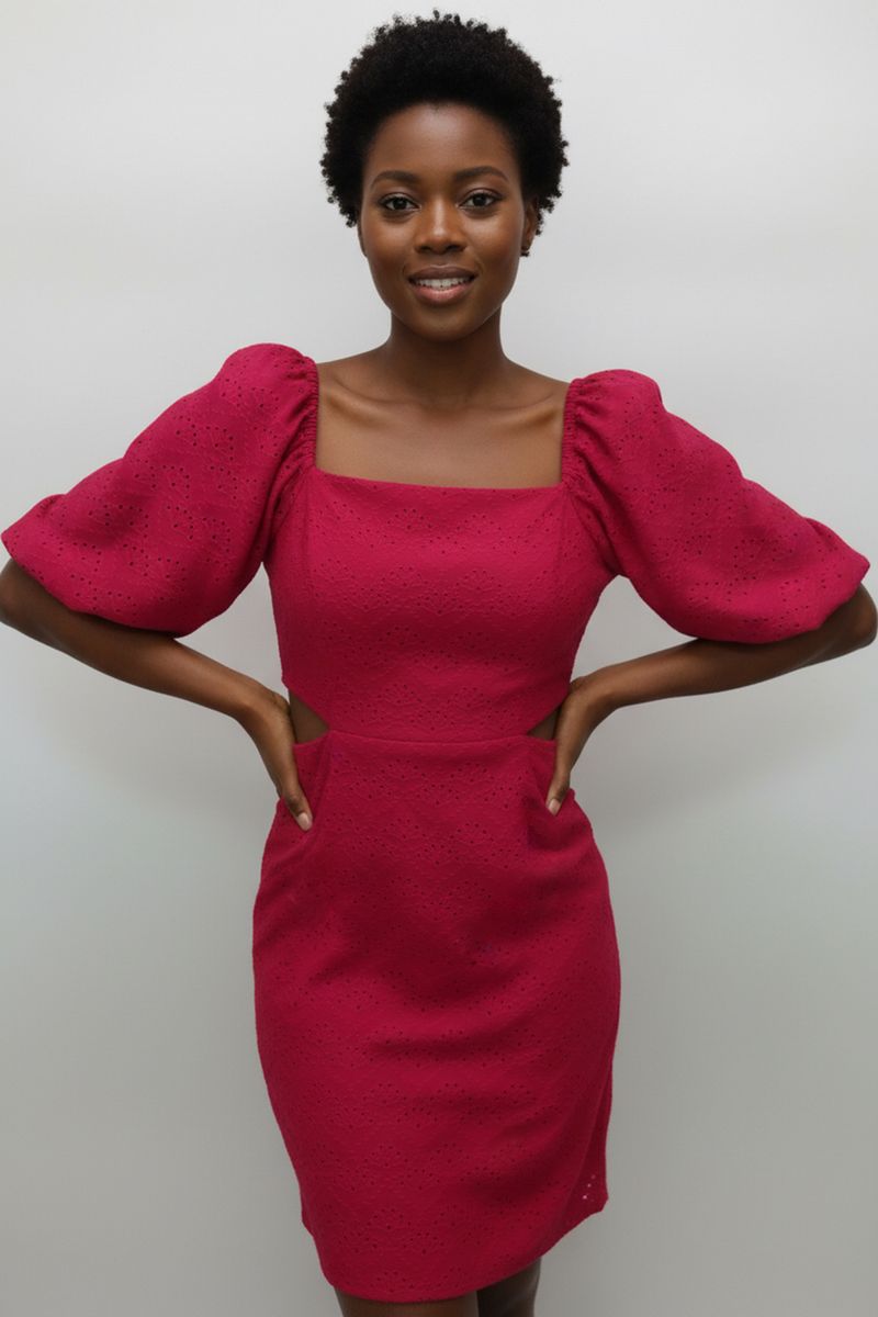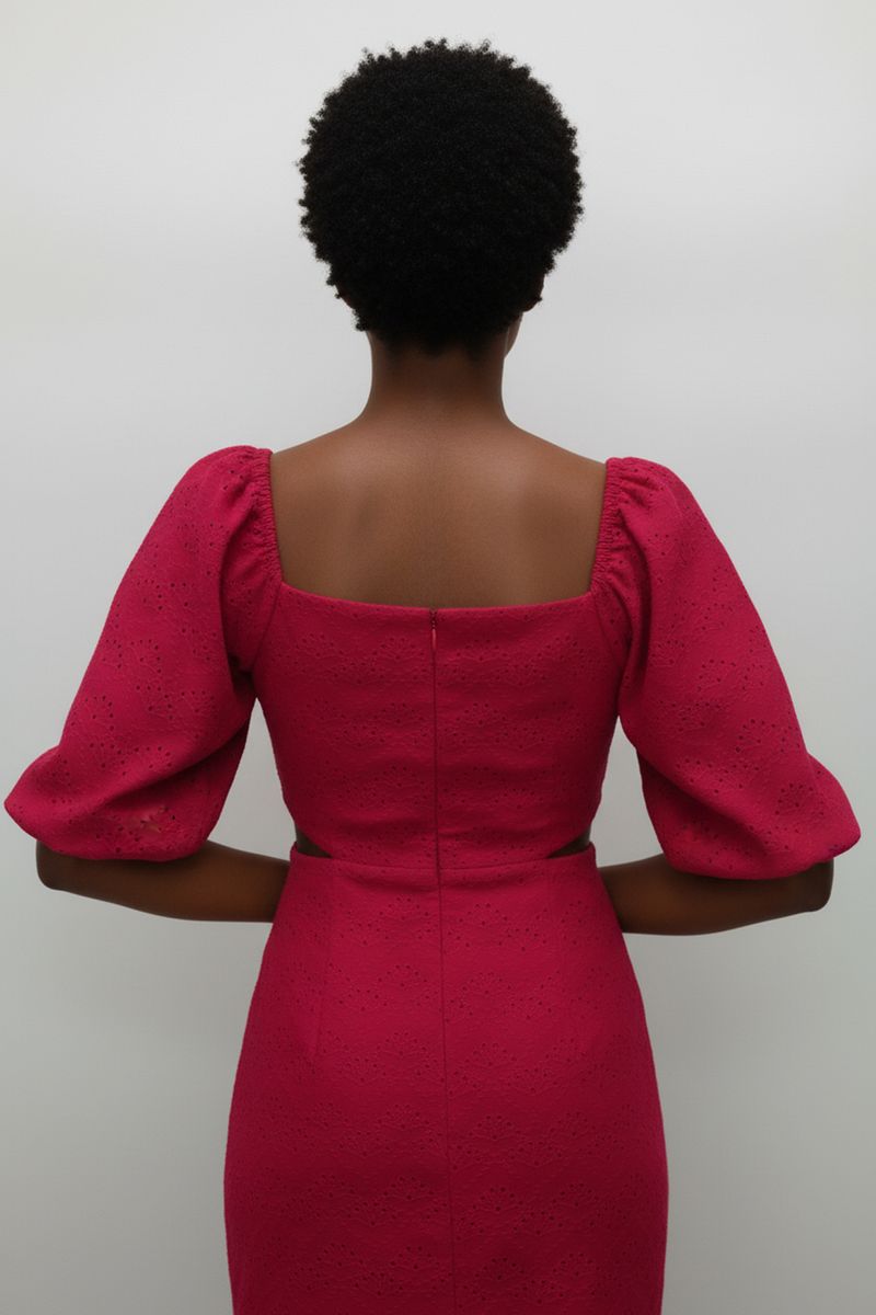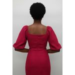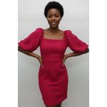 laise fúcsia vibrante, decote quadrado e mangas bufantes, ele realça a silhueta com recortes na cintura. Perfeito para quem busca