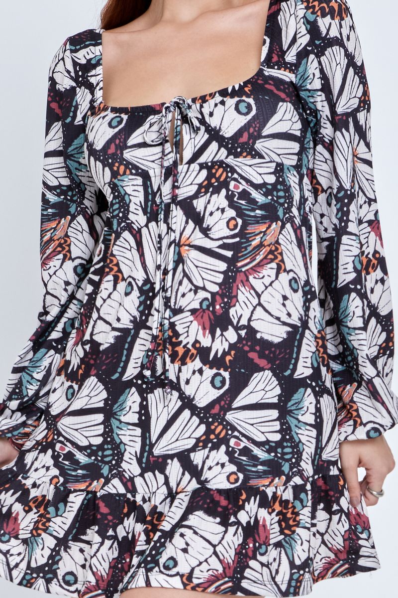 Vestido feminino estampado com borboletas, delicado e perfeito para um look alegre e feminino.