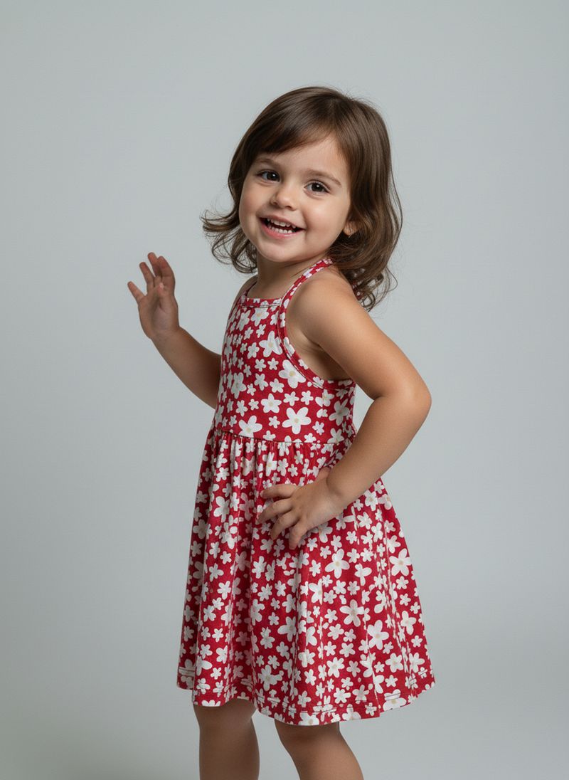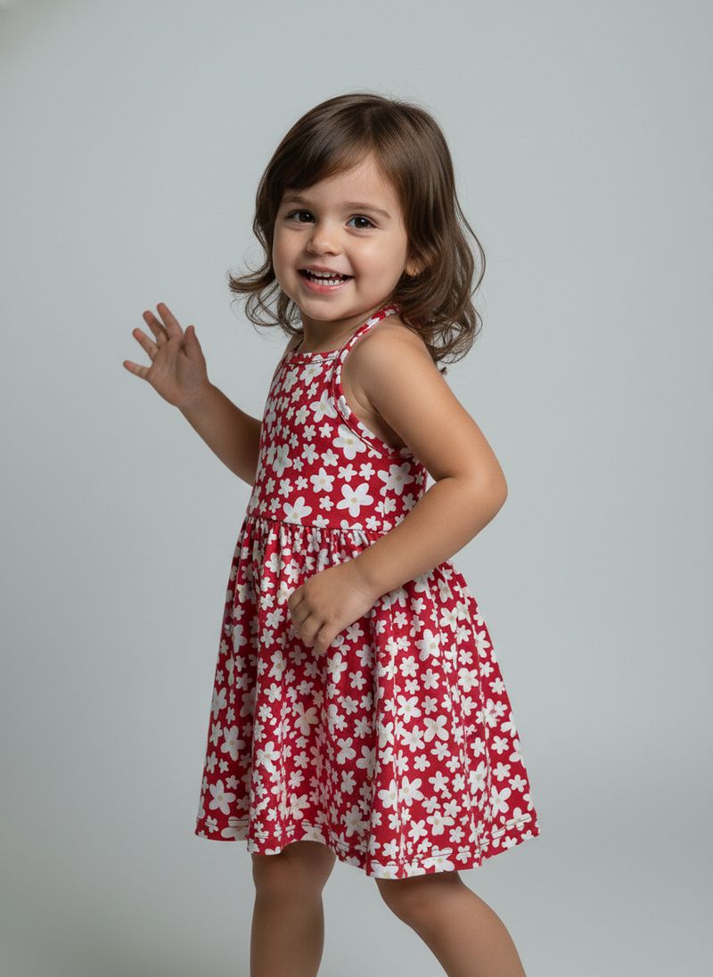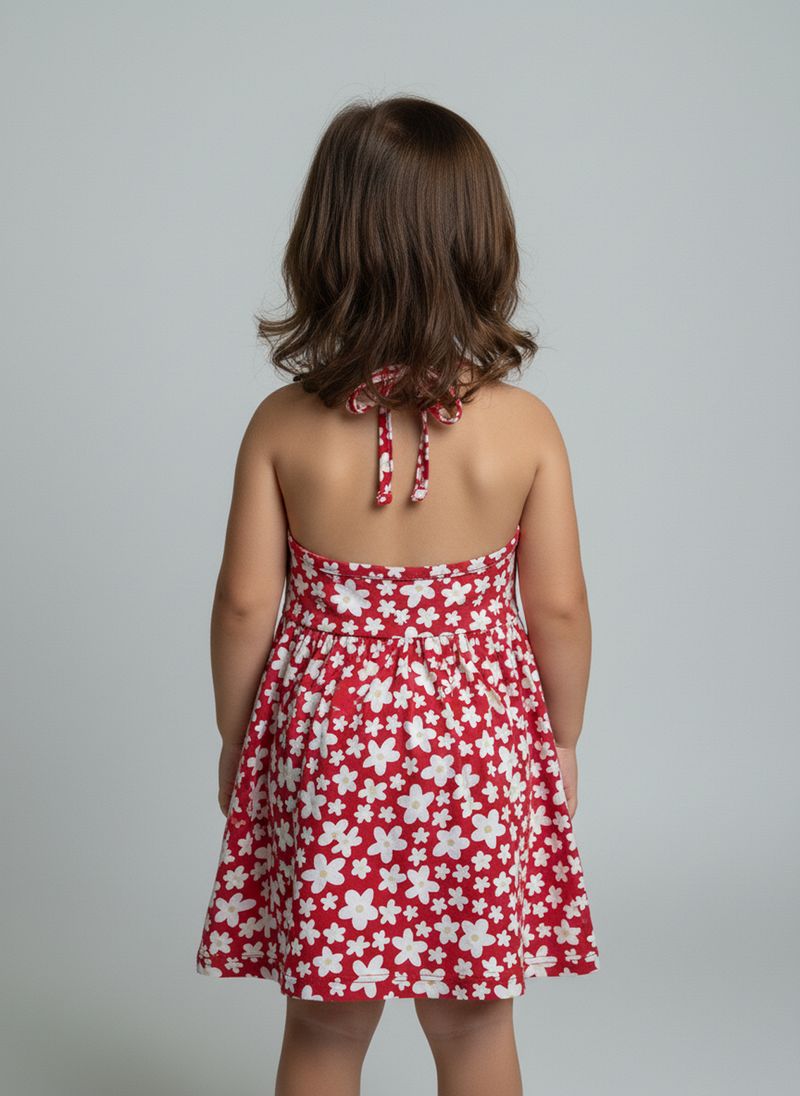 Deixe sua pequena brilhar com o Vestido Infantil Halter Estampa Floral Vermelha e Branca Caedu. Confeccionado em 100% algodão, oferece máximo conforto e leveza. Seu design vibrante com estampa floral e decote frente única garante um look charmoso e perfeito para a moda infantil.