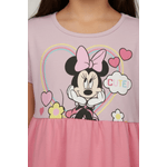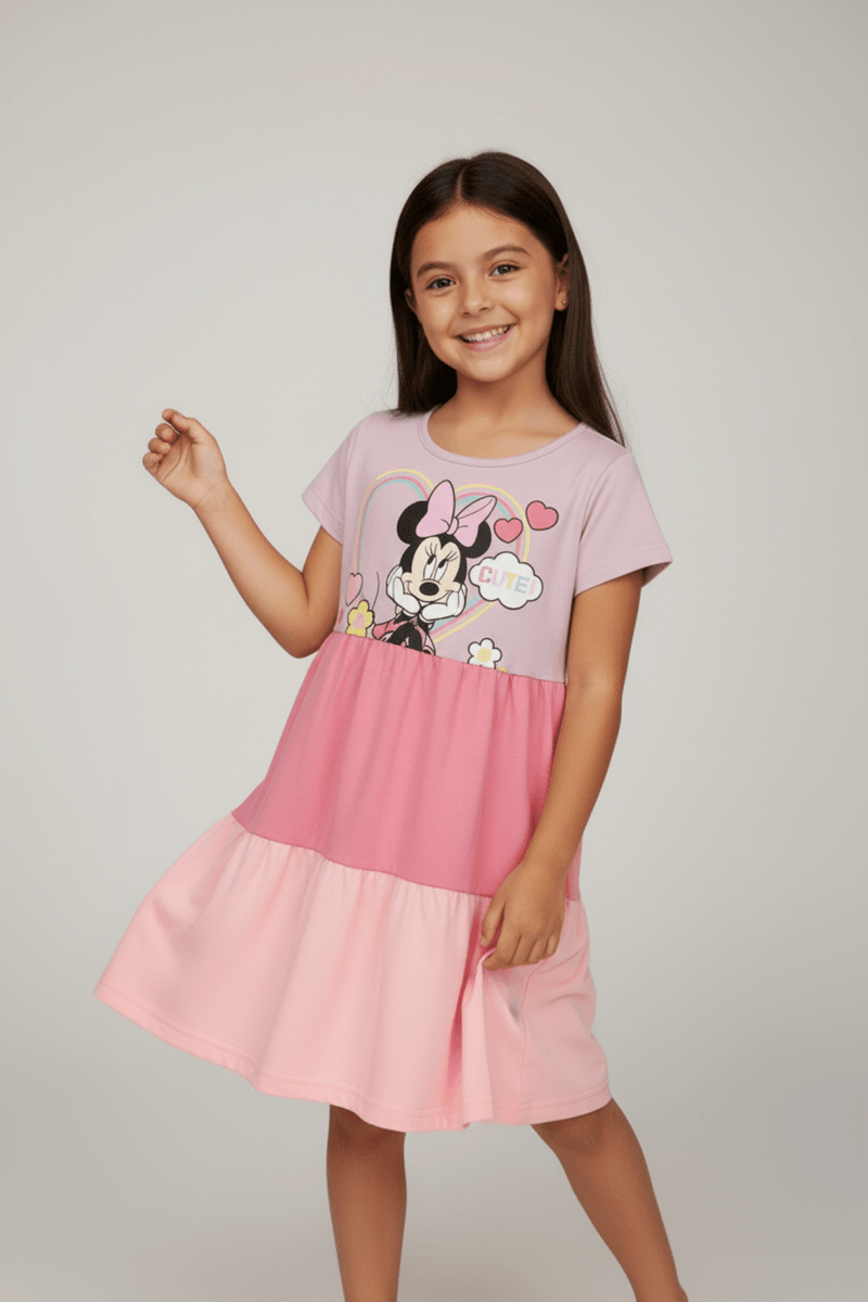 Celebre a magia com o Vestido Infantil Minnie Lilás Caedu! Feito em meia malha, proporciona conforto e liberdade para brincar. Com estampa vibrante da Minnie Mouse e design em blocos de cores, é a roupa infantil perfeita para sua pequena brilhar com muito estilo e alegria.