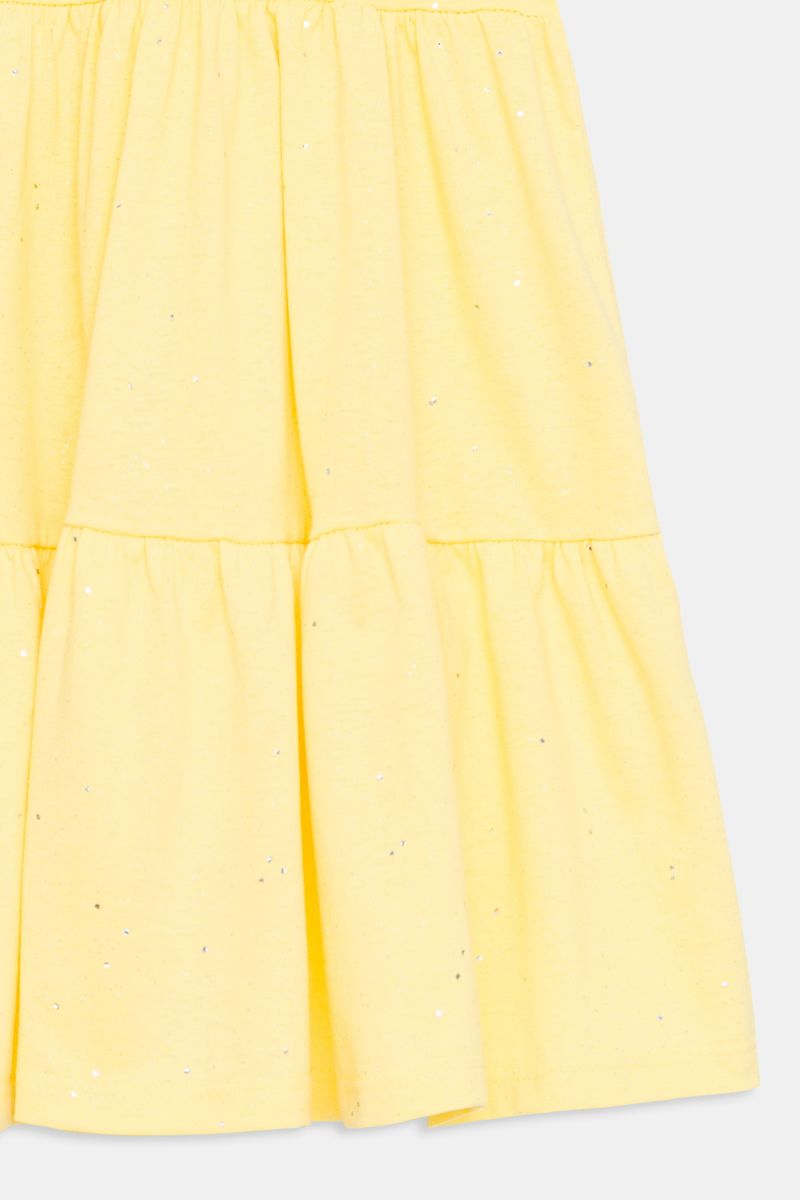 Encante-se com o Vestido Infantil com Glitter Amarelo Caedu, a escolha perfeita para momentos especiais. Confeccionado em meia malha de algodão, este vestido proporciona conforto e um toque de brilho com seu charmoso glitter. Uma roupa infantil que combina estilo e alegria para sua pequena.