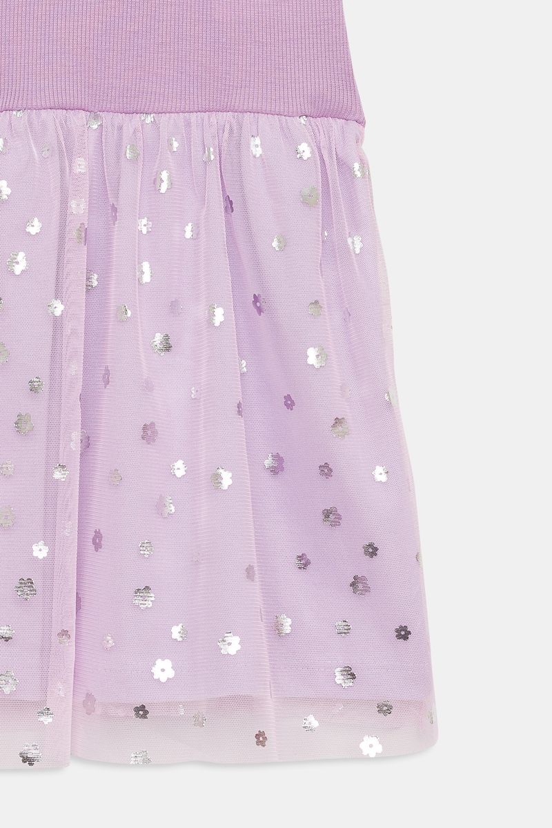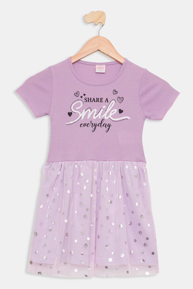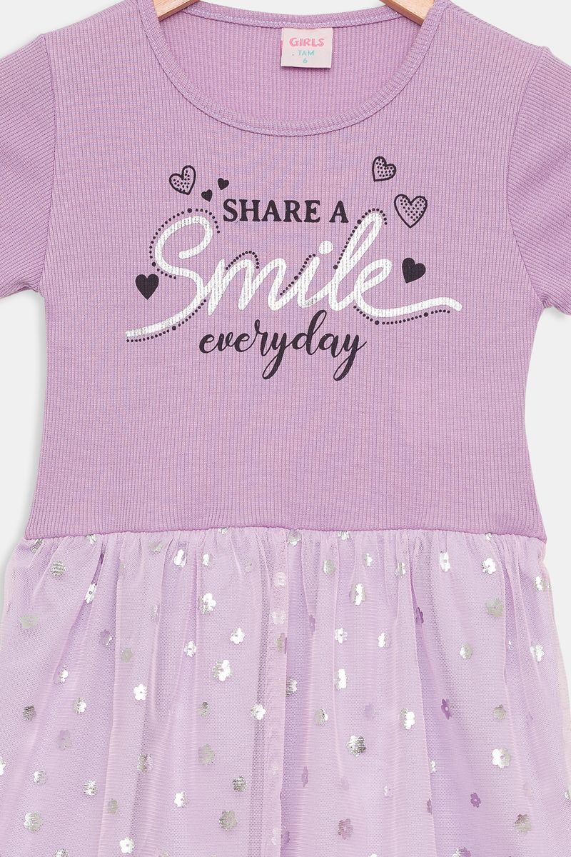 Vestido Infantil com Tule Metalizado Smile Lilás Tam 4 a 8