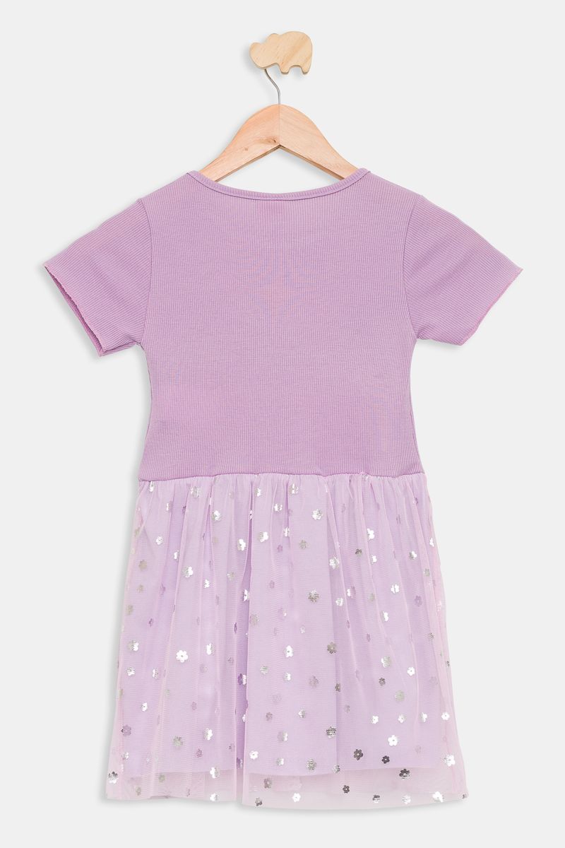VestuárioOfertasInfantilNovidadesInfantilVestidosInfantil MeninasMeninas 4 a 8 anosVestido Infantil com Tule Metalizado Smile Lilás Tam 4 a 8