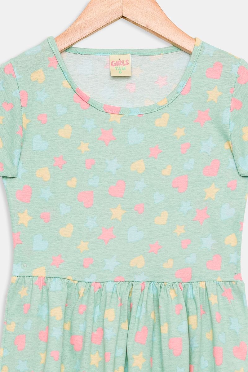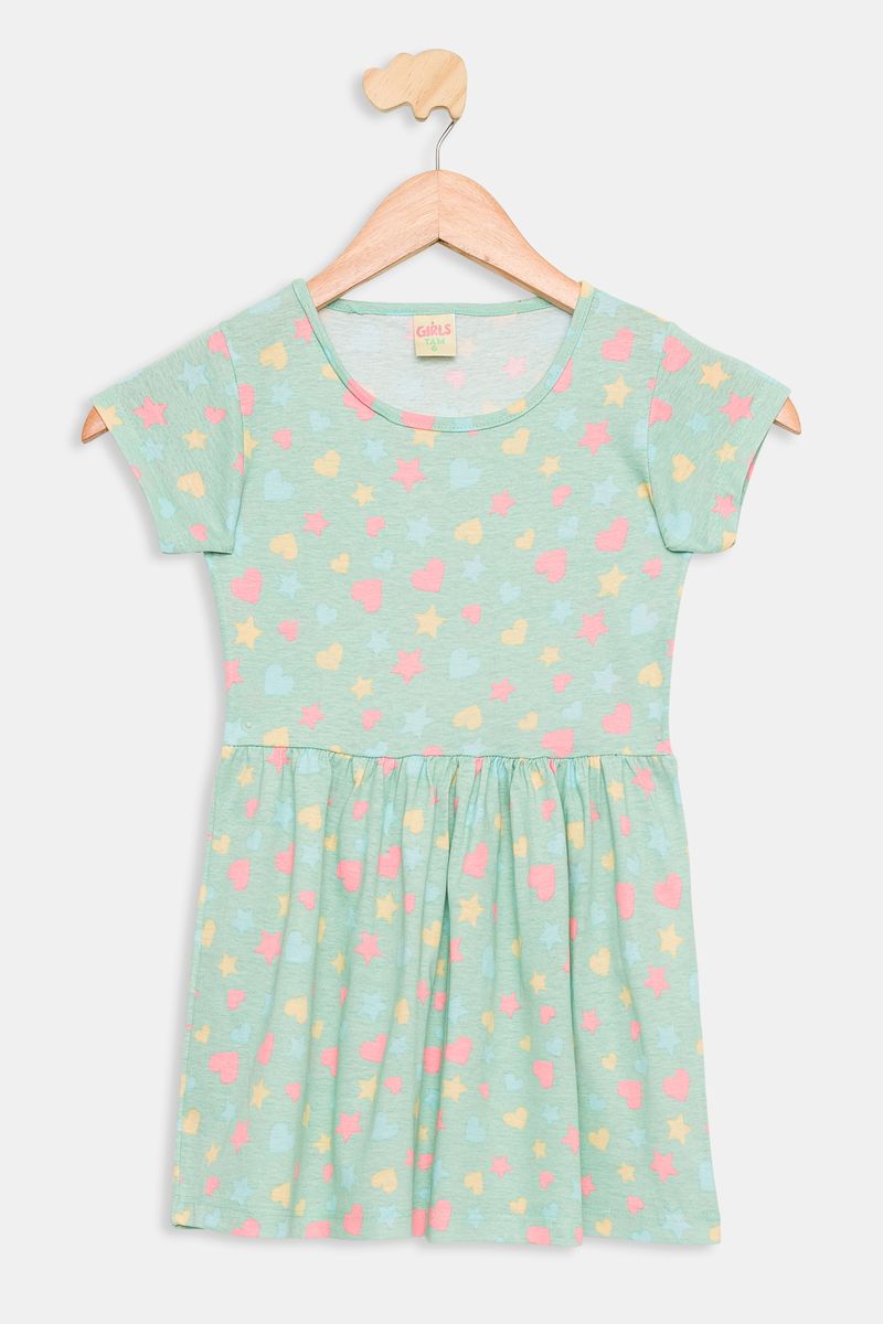 Vestido Infantil Corações Verde Claro Caedu - Conforto e Estilo