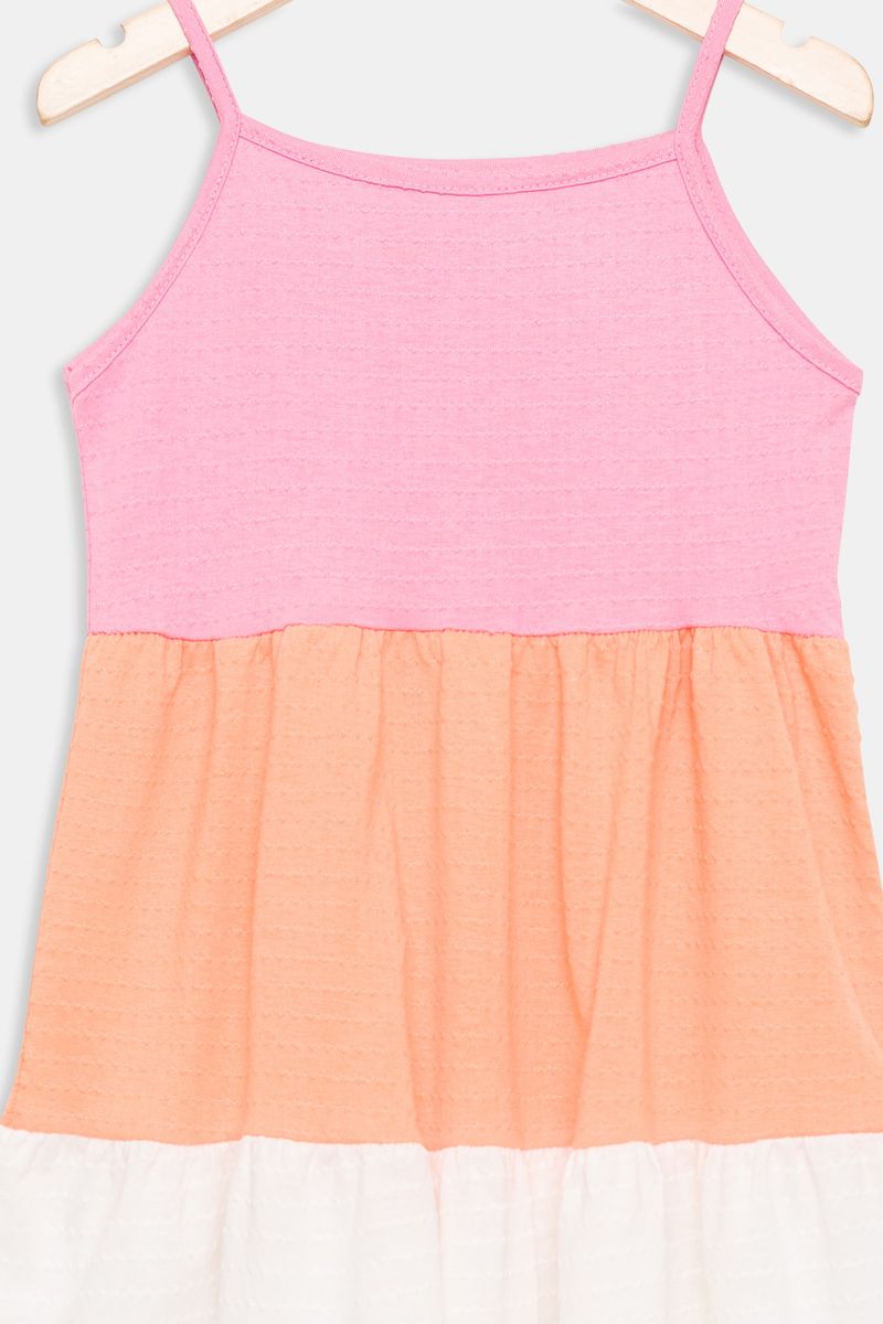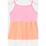 Detalhes: Alças finas, color-blocked em três seções horizontais, seções franzidas